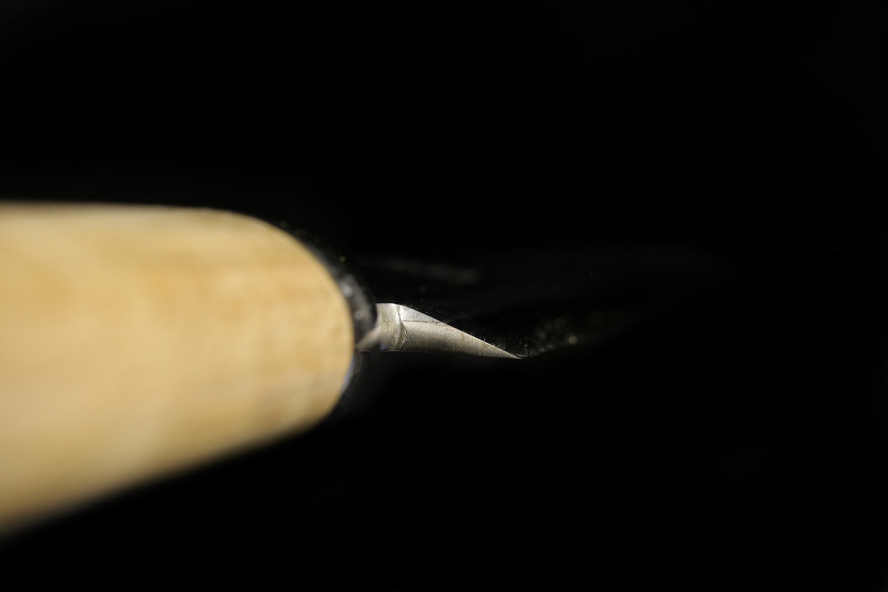 You will notice that in between the softer carbon steel and harder High Speed Steel cutting edge, there is a tiny bit of copper.  This was a method of cladding that was used long ago in Japan.