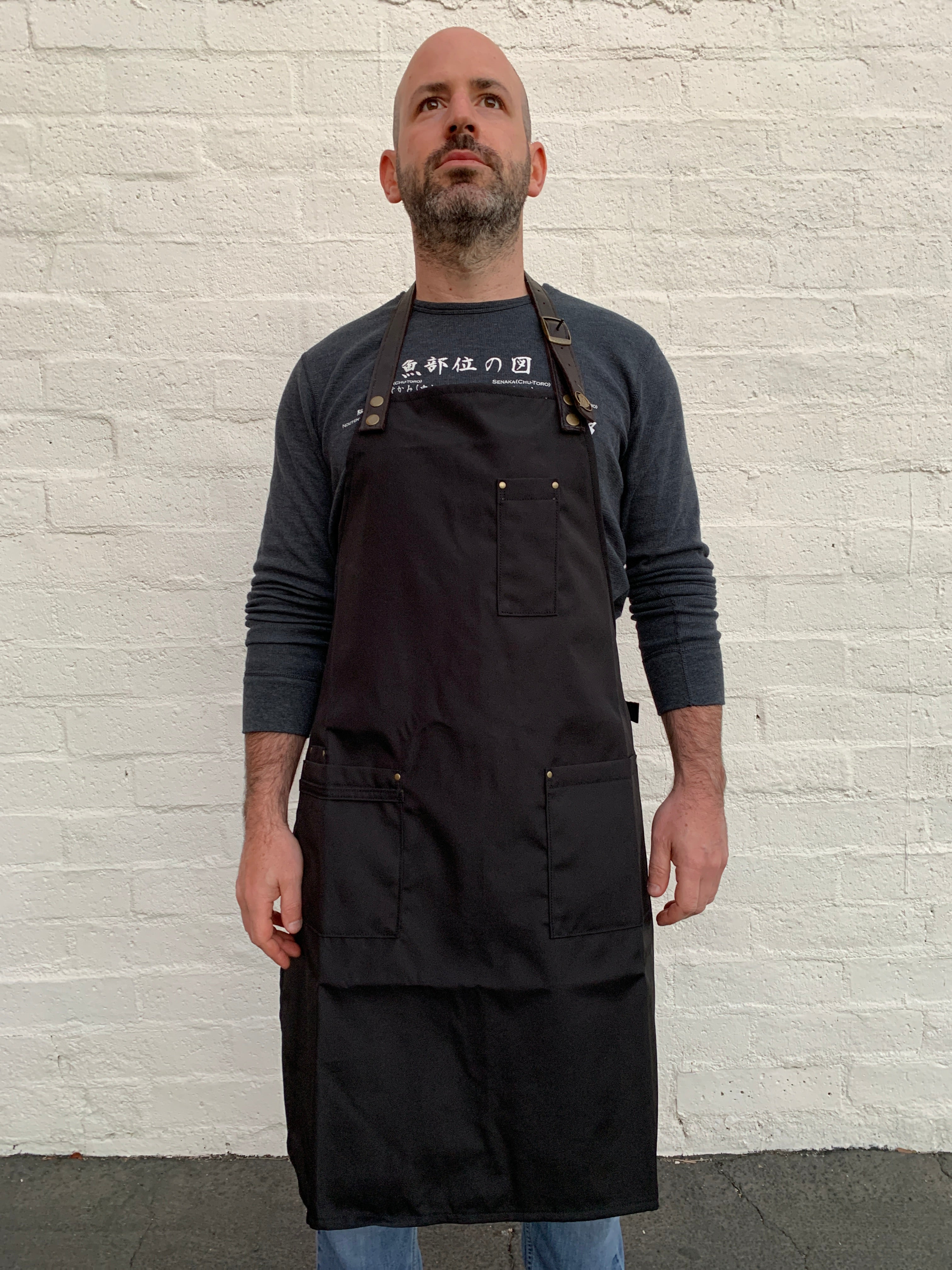 Their signature, however, lies within. They use specialty fabrics for the liner, sourced both locally and abroad, to give a unique and fun touch to each apron. Finally, the aprons have premium dark brown or tan leather trim/straps and brass hardware and clips.