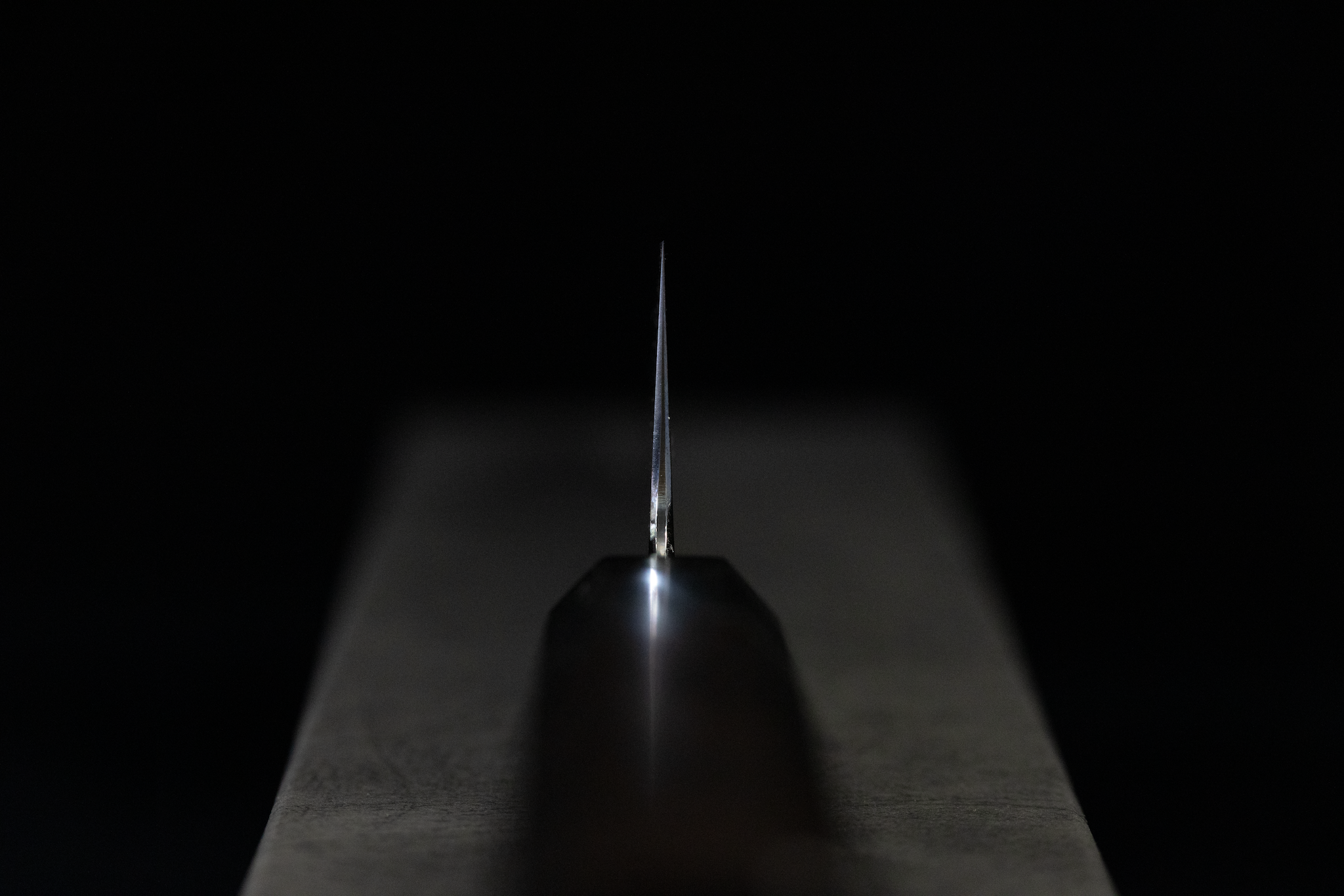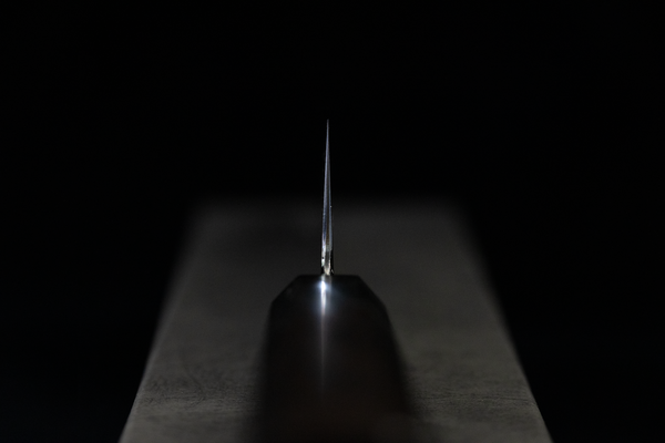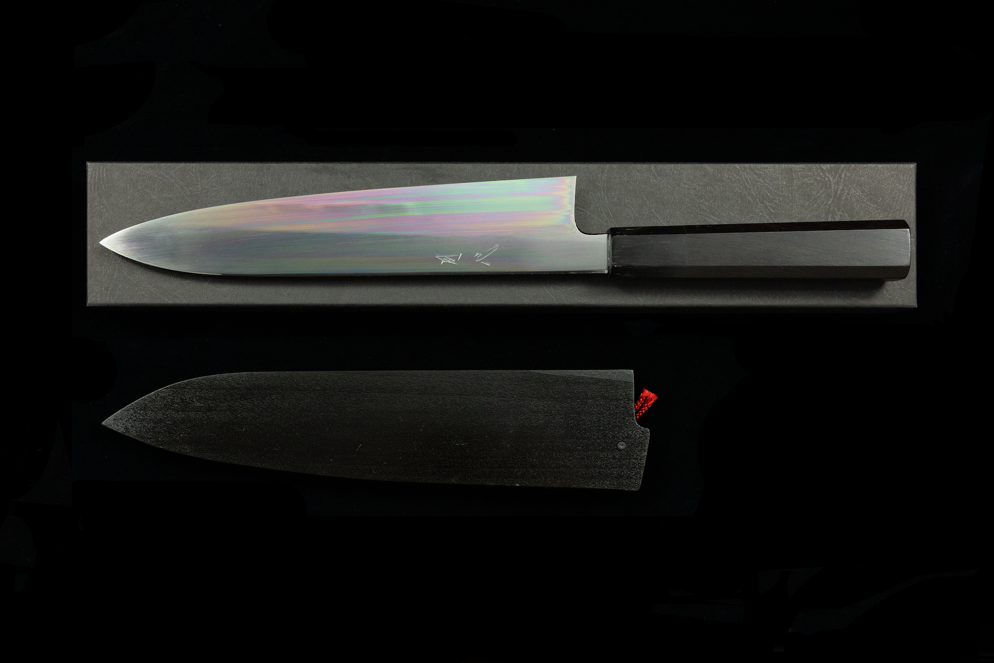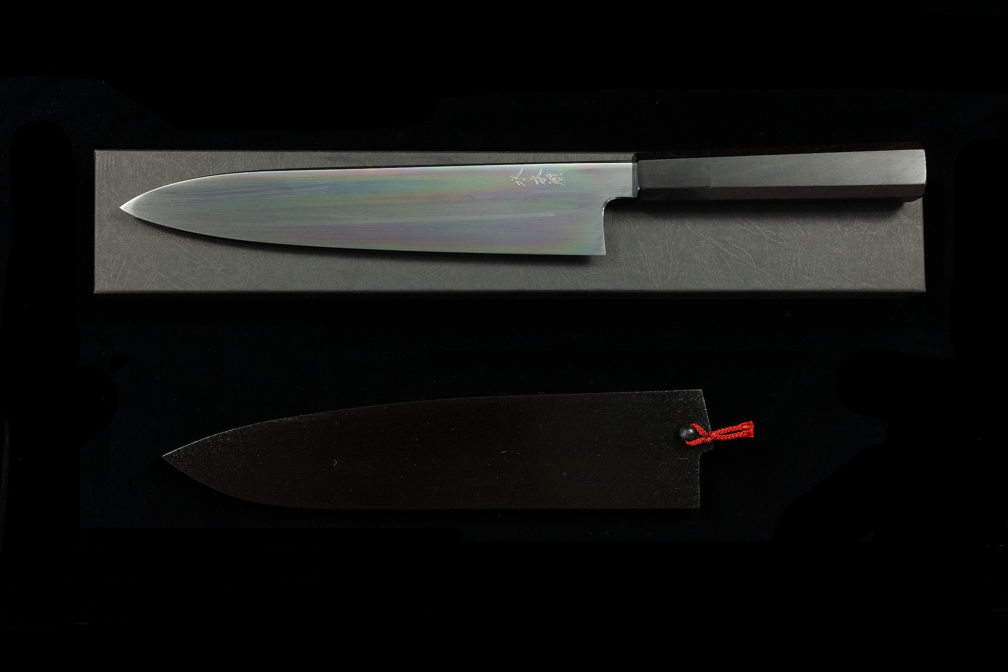 • We are proud of our Gesshin Kagekiyo series. These knives represent some of the highest levels of craftsmanship and quality we have seen. The blacksmiths, sharpeners, and even lacquer-ware craftsmen are all amazingly skilled, as can clearly be seen by simply looking at them. In fact, all of the craftsmen are certified craftsmen or dentou-kougeishi (a very prestigious honor). These knives have amazing fit and finish, spectacular grinds, some of the most beautiful handles and saya we've seen on Japanese knives, and amazing geometry. They are really thin behind the edge, have great distal taper, and wide bevels, making them easier to thin and sharpen. The lacquer craftsmen uses real lacquer on these, not synthetic lacquer as more commonly used. Even the boxes are beautiful lacquer-ware. We hope you guys are as excited as we are.