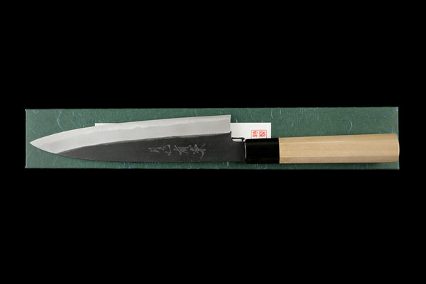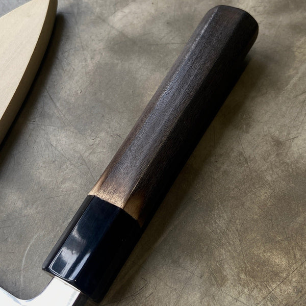 The Gesshin 6000 splash and go stone is a resinoid based stone with a white alumina oxide abrasive. It is a medium hardness stone with great cutting speed and excellent polish. It works well for a variety of tasks, including sharpening single and double bevel knives, uraoshi sharpening, and even microbevels. It is one of the stones I use most often as a finishing stone when sharpening for customers, as it leaves a great balance of refinement and bite. One of the things I like most about this stone is that the polish it leaves is incredibly smooth and even, which makes this one of my go to stones for wide bevels and single bevel knives. I have found it to be pretty fast on all steels, including high wear resistance and difficult to sharpen steels.