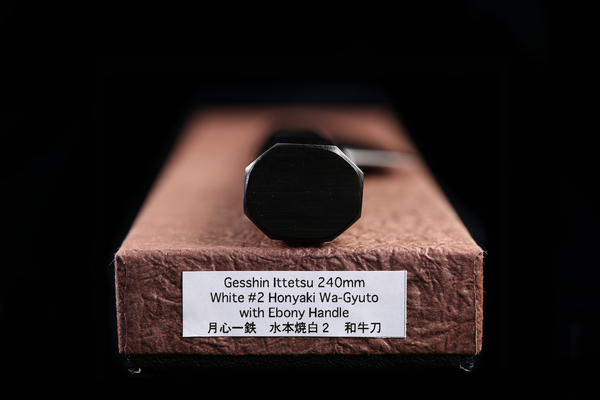Gesshin Ittetsu 240mm White #2 Honyaki Wa-Gyuto with Ebony Handle