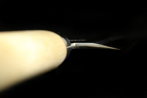 We like his knives because they are so unique, and combine wonderful performance with great artistry and craftsmanship.  No other knife maker in Japan that we know of has such a long history of working with High Speed Steel, and no other kitchen knives we know of use the same steel.  We also think the design of his knives are very interesting... especially the metal ferrule.  I've used some of his knives over the last few years, and am constantly impressed with the edge retention and durability.