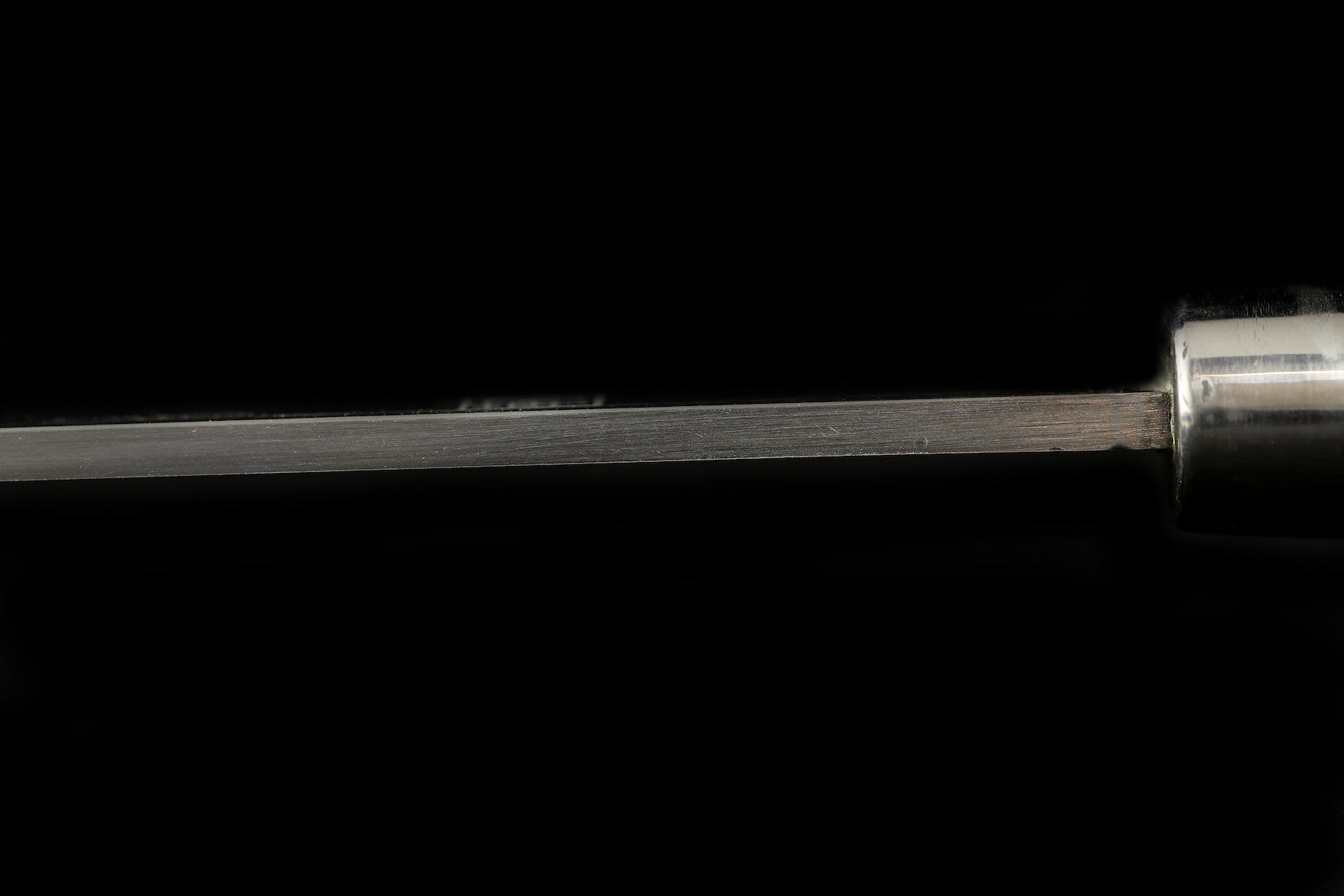 He had been working as a knife maker since his early 20's (before WWII) and has developed a unique philosophy about his knives.  He chose to use high speed steel because he liked its qualities... extremely durable, takes a great edge, easy to sharpen, and has great edge holding.  The cost of his materials was extremely high, but he cared only about producing the best knives he could.  He completed each knife entirely in-house, including the making of the knife, the handle, the saya, etc.  He even built most of the machinery in his workshop.