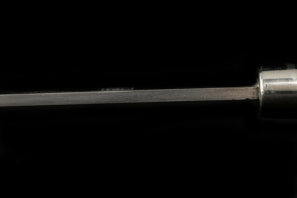 • This high speed knife is one of a kind knife.  The maker of the Jin knives was born in Tokyo before World War II and began making knives early on in his life.  We met with him some years ago, during our first business trip to Japan.  After a very nice meeting with him, we were lucky enough to be allowed to carry his knives.  At the time we met him, he was already retired, so his knives are all new old stock (unused and new, but produced years ago).  Sadly, this craftsman passed away at the end of 2015.  He was a dear friend and is sincerely missed.  He is survived by his son, who, while also a craftsman, does not make knives.  As he is no longer producing knives, the inventory is EXTREMELY LIMITED.  Once things are gone, they are gone.