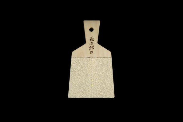 Shark skin graters like this are used in Japan to grate wasabi for sushi and other dishes that require it. Shark skin is considered the best material to use for grating wasabi.
