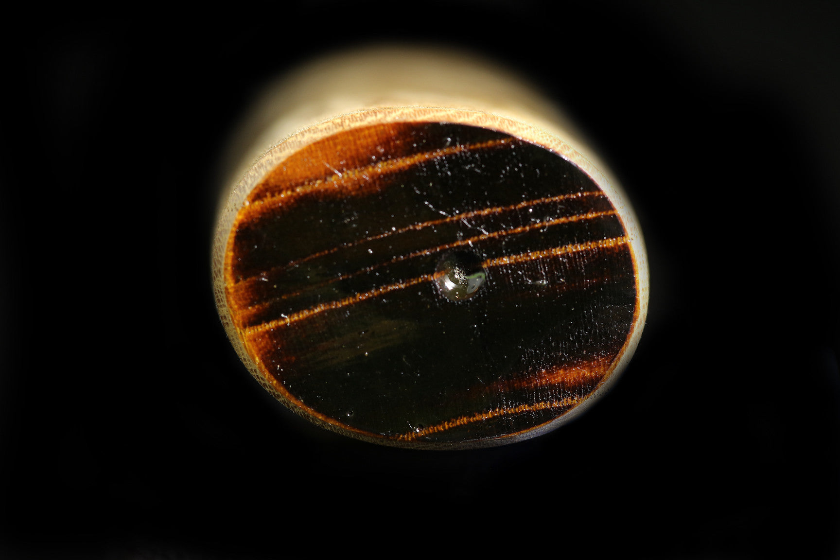 You will notice that in between the softer carbon steel and harder High Speed Steel cutting edge, there is a tiny bit of copper.  This was a method of cladding that was used long ago in Japan.
