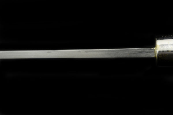 We refinish, polish, and sharpen each one of these before shipping them out.  This includes refinishing the handle and saya, cleaning up and polishing the blade, and sharpening the knife.  Because they were made a long time ago, we want to make sure that they are in the best condition they can be in by the time they make it to you.