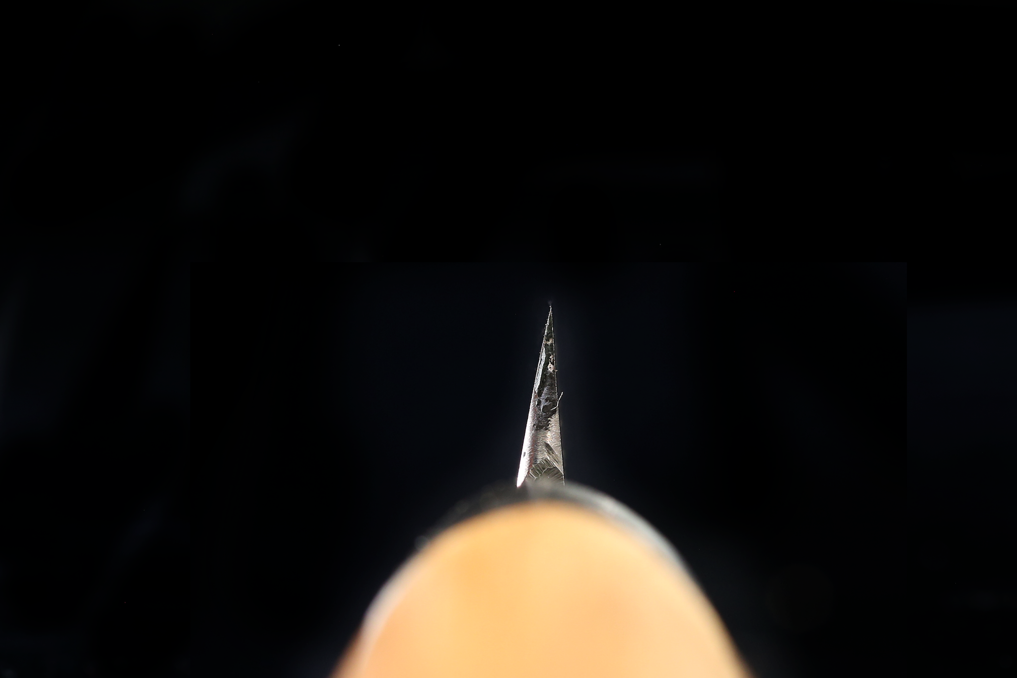 You will notice that in between the softer carbon steel and harder High Speed Steel cutting edge, there is a tiny bit of copper.  This was a method of cladding that was used long ago in Japan.