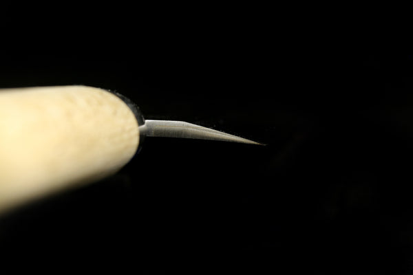 We like his knives because they are so unique, and combine wonderful performance with great artistry and craftsmanship.  No other knife maker in Japan that we know of has such a long history of working with High Speed Steel, and no other kitchen knives we know of use the same steel.  We also think the design of his knives are very interesting... especially the metal ferrule.  I've used some of his knives over the last few years, and am constantly impressed with the edge retention and durability.