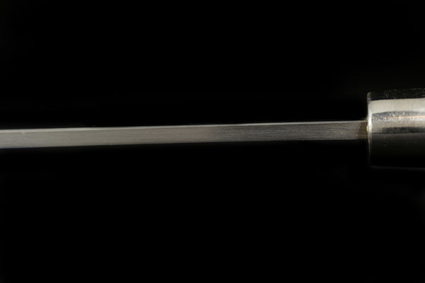 • This high speed knife is one of a kind knife.  The maker of the Jin knives was born in Tokyo before World War II and began making knives early on in his life.  We met with him some years ago, during our first business trip to Japan.  After a very nice meeting with him, we were lucky enough to be allowed to carry his knives.  At the time we met him, he was already retired, so his knives are all new old stock (unused and new, but produced years ago).  Sadly, this craftsman passed away at the end of 2015.  He was a dear friend and is sincerely missed.  He is survived by his son, who, while also a craftsman, does not make knives.  As he is no longer producing knives, the inventory is EXTREMELY LIMITED.  Once things are gone, they are gone.