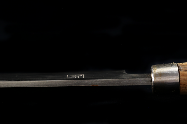 He had been working as a knife maker since his early 20's (before WWII) and has developed a unique philosophy about his knives.  He chose to use high speed steel because he liked its qualities... extremely durable, takes a great edge, easy to sharpen, and has great edge holding.  The cost of his materials was extremely high, but he cared only about producing the best knives he could.  He completed each knife entirely in-house, including the making of the knife, the handle, the saya, etc.  He even built most of the machinery in his workshop.