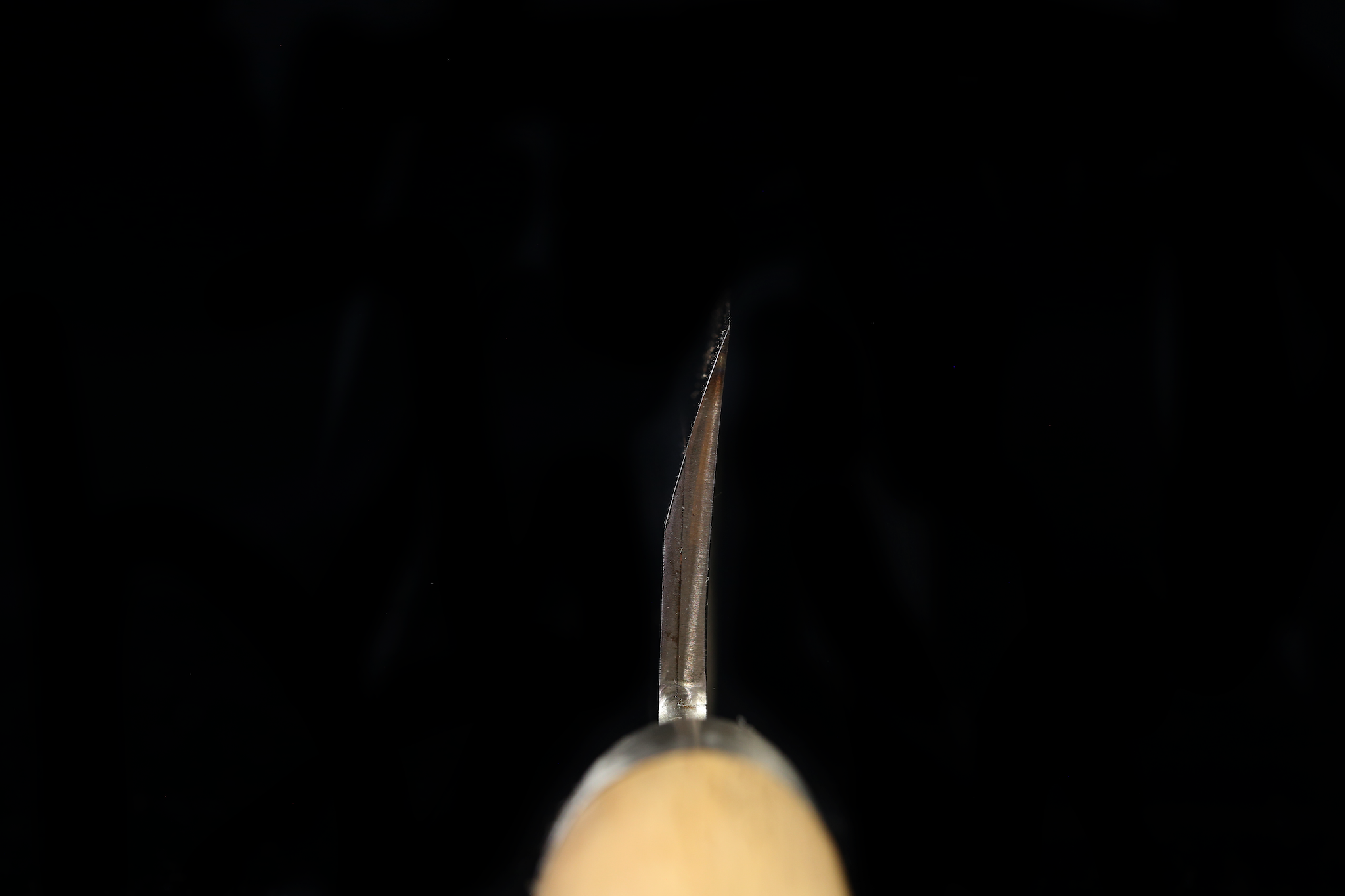 You will notice that in between the softer carbon steel and harder High Speed Steel cutting edge, there is a tiny bit of copper.  This was a method of cladding that was used long ago in Japan.