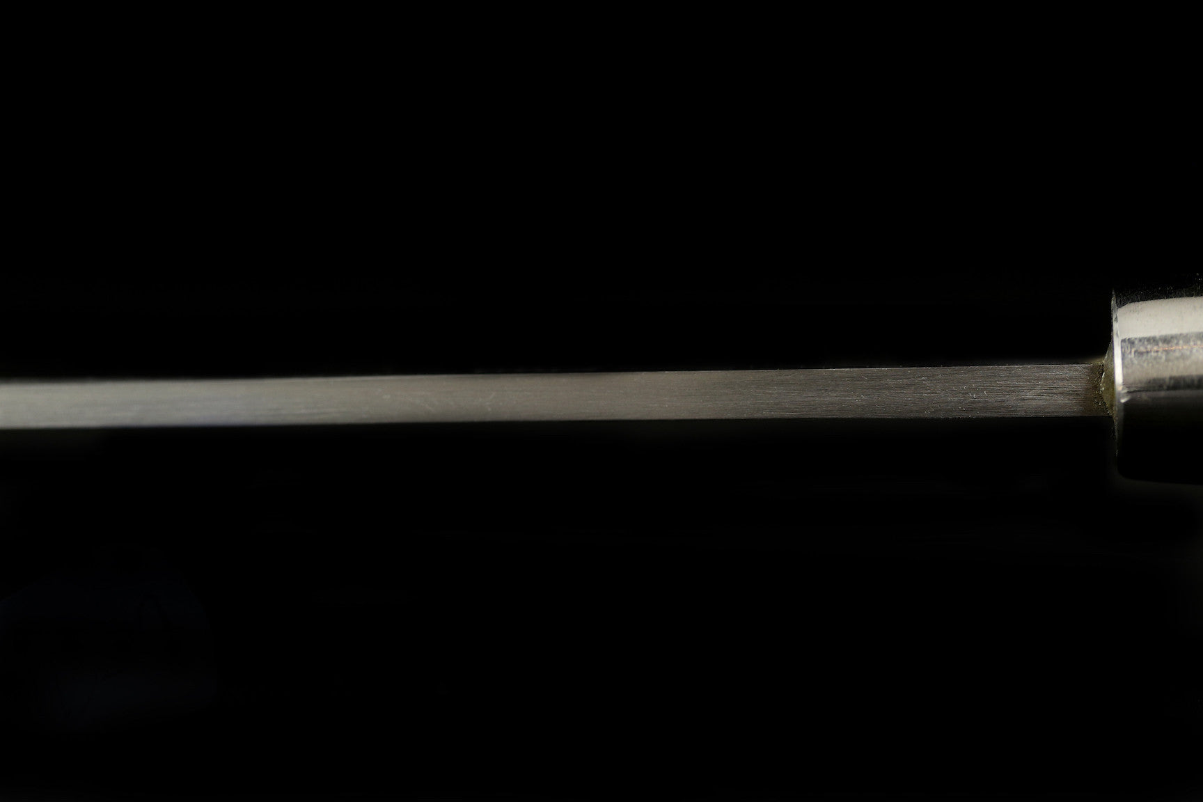 • This high speed knife is one of a kind knife.  The maker of the Jin knives was born in Tokyo before World War II and began making knives early on in his life.  We met with him some years ago, during our first business trip to Japan.  After a very nice meeting with him, we were lucky enough to be allowed to carry his knives.  At the time we met him, he was already retired, so his knives are all new old stock (unused and new, but produced years ago).  Sadly, this craftsman passed away at the end of 2015.  He was a dear friend and is sincerely missed.  He is survived by his son, who, while also a craftsman, does not make knives.  As he is no longer producing knives, the inventory is EXTREMELY LIMITED.  Once things are gone, they are gone.