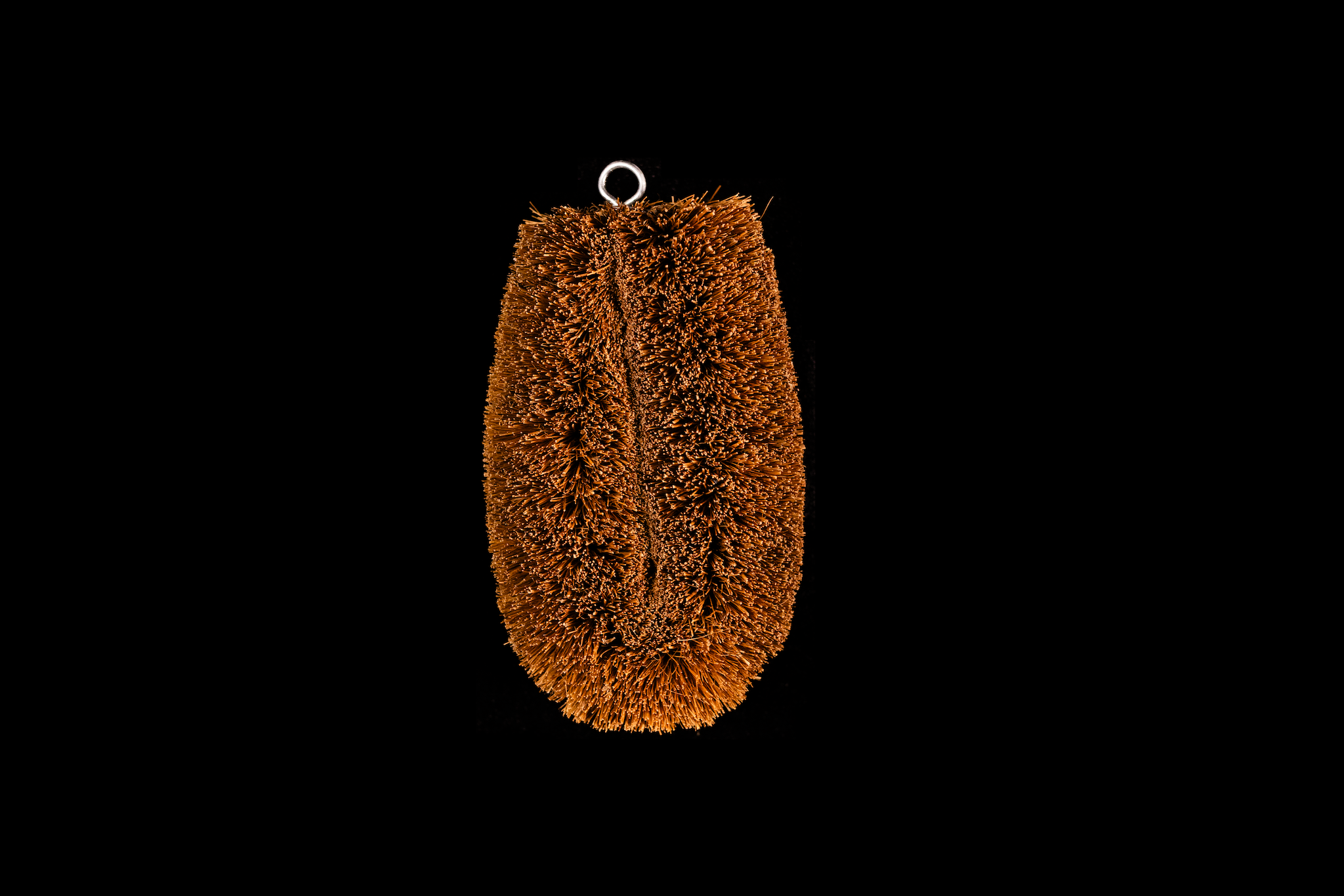 • Tawashi (タワシ) is a Japanese scrubbing brush, used to wash off dirt, grime, and stains. Because the Tawashi is hard, durable and waterproof, it is suitable for washing kitchen equipment, bathrooms, shoes, and anything else that does not get damaged by this kind of bristle.  The bristles are softer than the metal in kitchen knives, so it can also work well for cleaning off knives and handles. It should not be used for delicate soft items. Initially when tawashi came to market, they were made from a specific kind of palm bristle (Trachycarpus).  However around the end of the Taisho era and the beginning of Showa era, the Trachycarpus palm became scarce, and other types of palm began to replace it.
