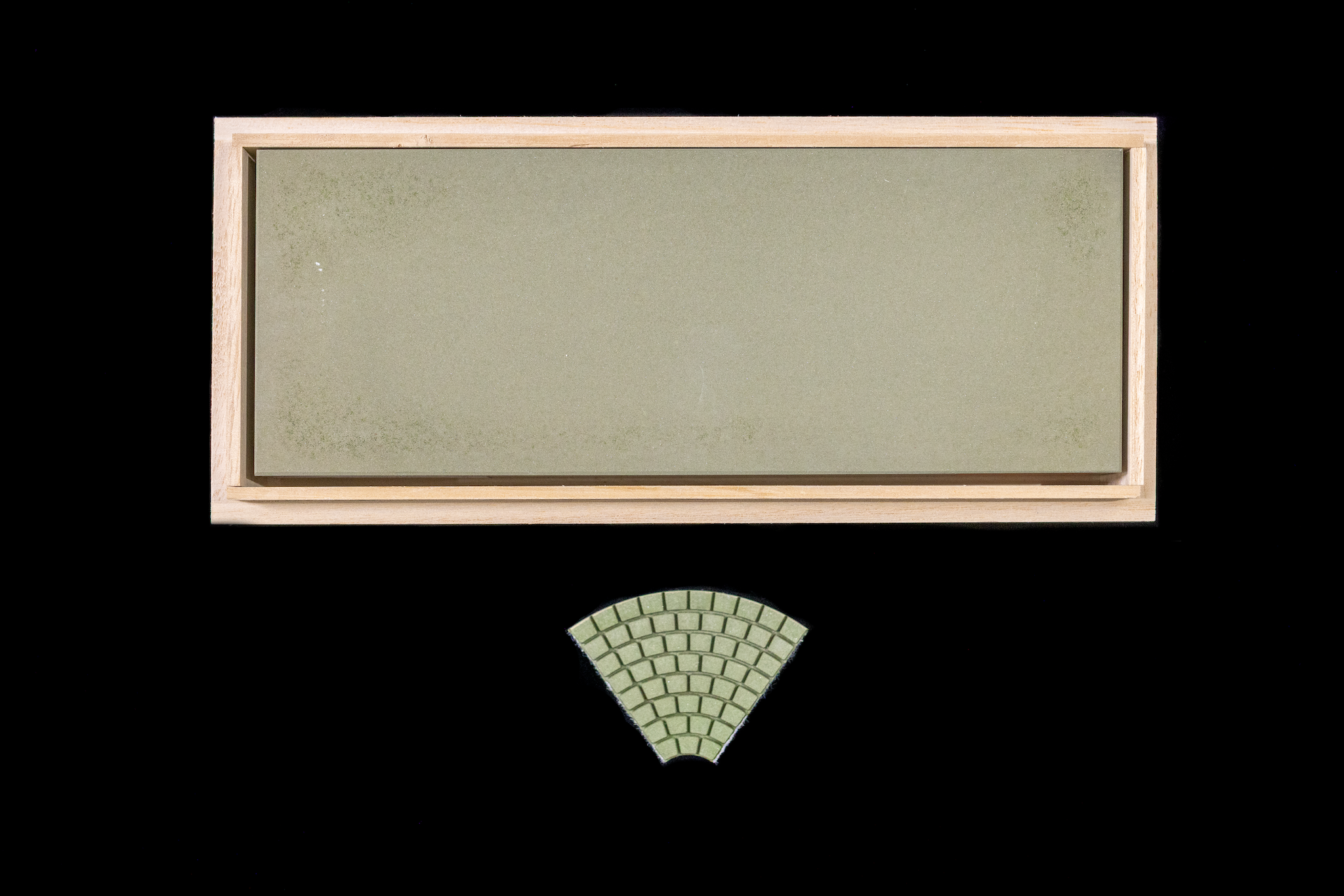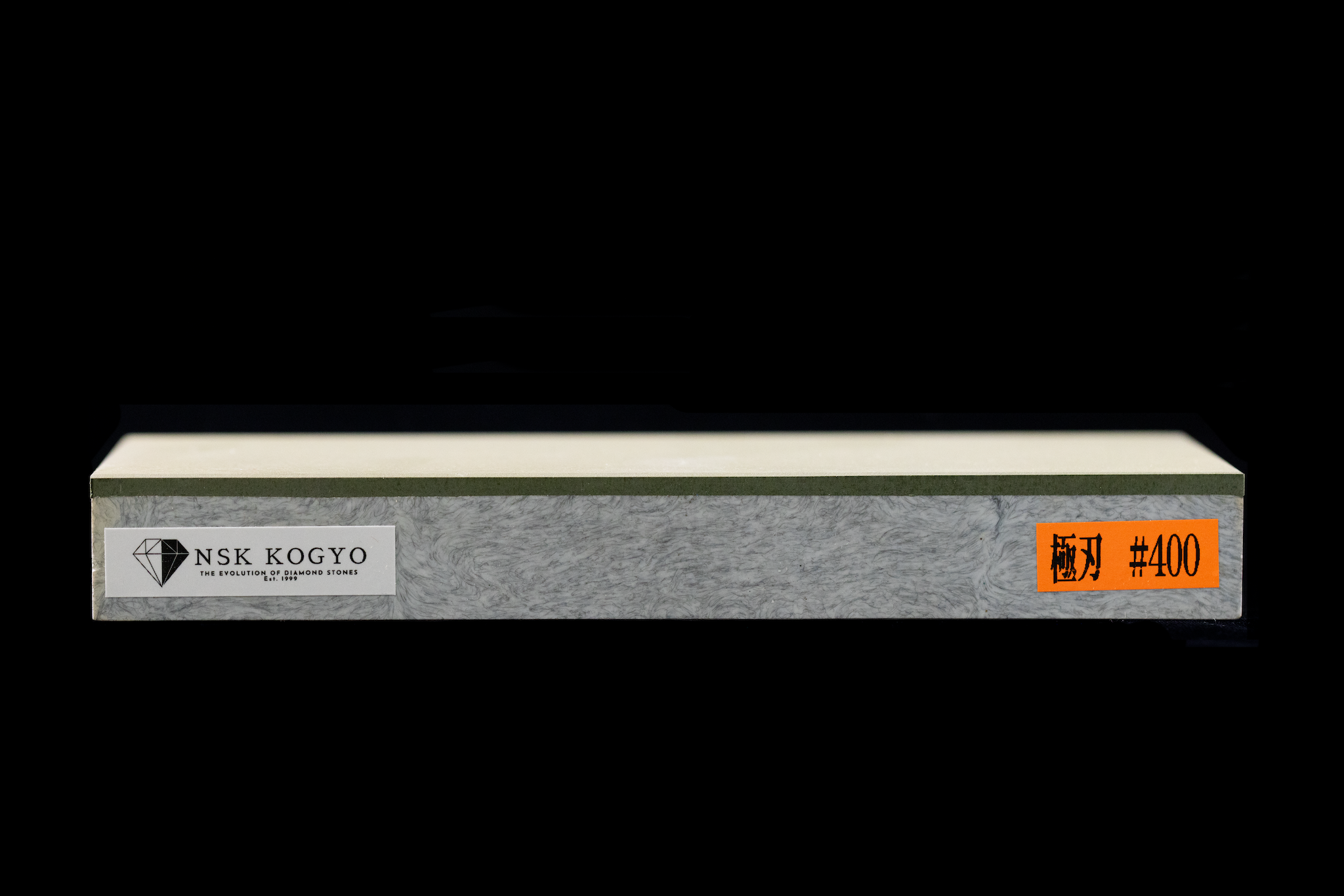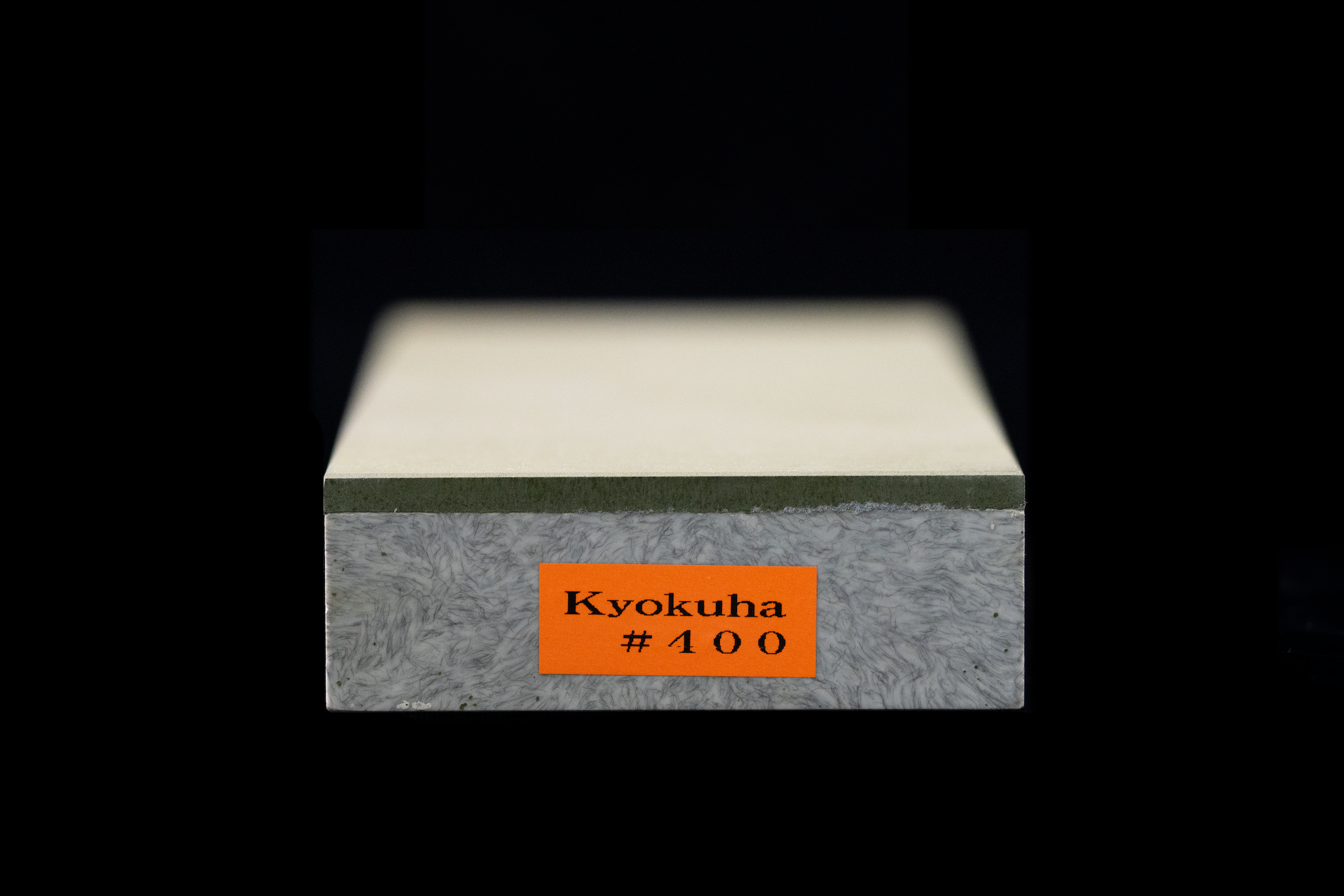 The Kyokuha Diamond 400 is a solid coarse stone. Unlike diamond plates, these stones are constructed in a manner more similar to normal waterstones. The top ~5mm of the stone is composed of a hard binding agent with diamond abrasive mixed in. This is then attached to a taller base, such that the whole item together is about the same size as many of the other stones we sell. Unlike some diamond stones that use metal or aluminum bases, this base is a lightweight, water-resistant plastic, which I have found to be lighter and more convenient to use and care for than other bases.