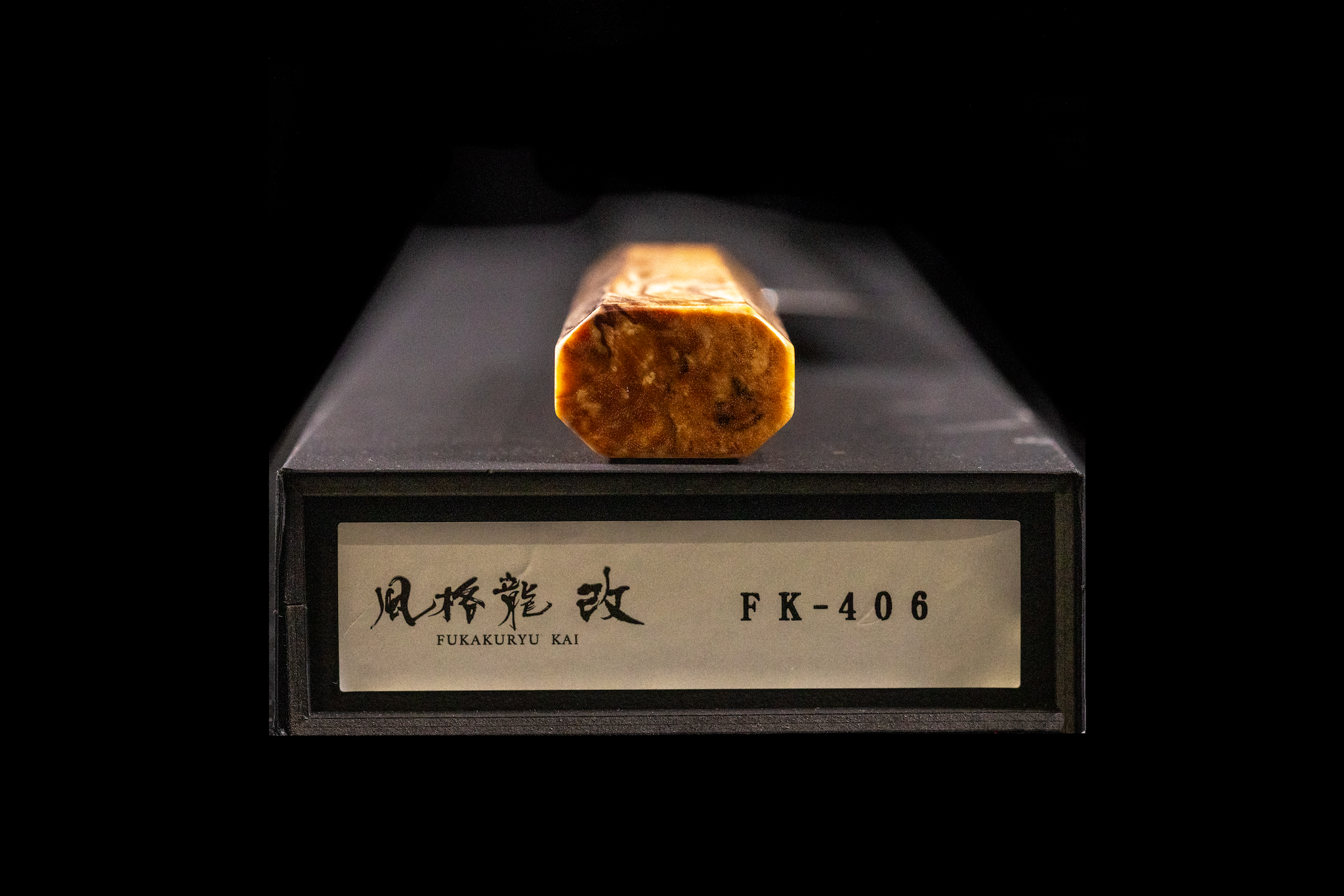 The Fukakuryu wa-sujihiki is very thin (not quite a laser, but close) and lightweight with a pointy, kiritsuke-shaped tip. The Damascus cladding is well done and not too loud, slightly muted by the acid etching on the blade. The fit and finish on the blade is very nice, including a chamfered choil. The handle is a modified octagonal maple with a coffin shape from the top down view. The ATS-314 core is exceptionally well heat treated, as they use molten salt baths in the process, which we agree is an excellent way to go about heat treating this steel. I have found it to be easier to sharpen and less brittle than VG-10.