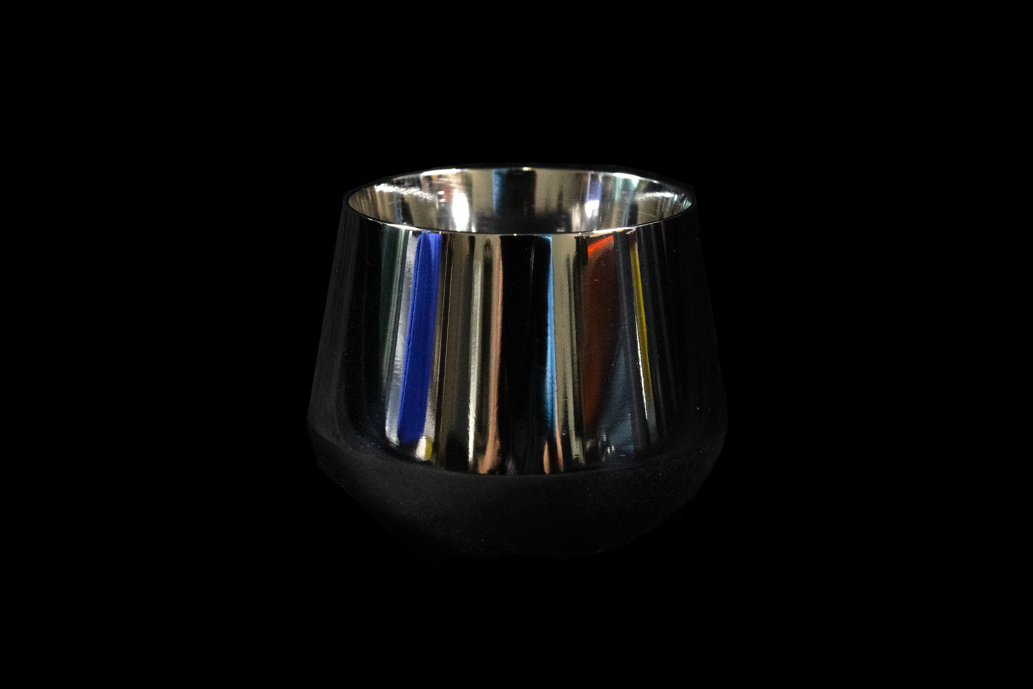 • This guinomi is crafted from tamahagane alloyed with chromium, giving it both strength and elegance. The surface is polished to a brilliant mirror finish, and upon closer inspection, subtle carbon banding becomes visible, each line a testament to the material's unique character. The base features a matte, textured finish that not only contrasts beautifully with the glossy upper half but also offers added durability against surface wear. Traditionally used for sake, guinomi are small vessels that elevate the drinking experience through form and craftsmanship.