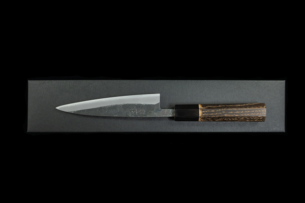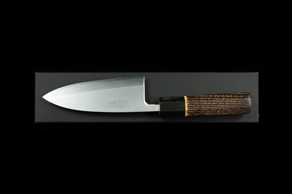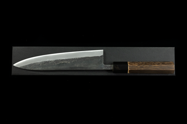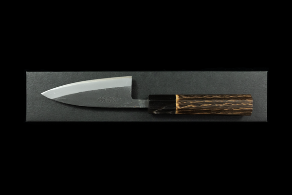 The Toki, or Crested Ibis, is an endangered species, once common in the Niigata area. Featuring white plumage on its body and a red head, the bird has been a part of Japanese folklore for generations. As this series is made in Sanjo, Niigata, the name Toki has significance. These knives are made by hand in a medium-sized workshop, focused on making user-friendly knives. Their knives tend to be a medium thickness, not super thin, but not like a super thick workhorse. The wide bevel designs work well for food release. And, because we love burnt chestnut handles, and they also come from Sanjo, the series features octagonal burnt chestnut handles with water buffalo ferrules.