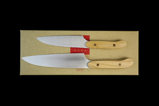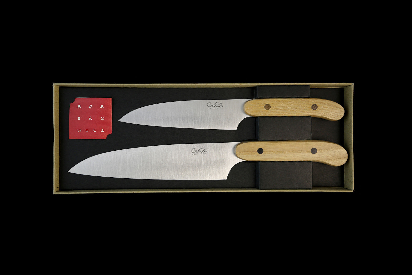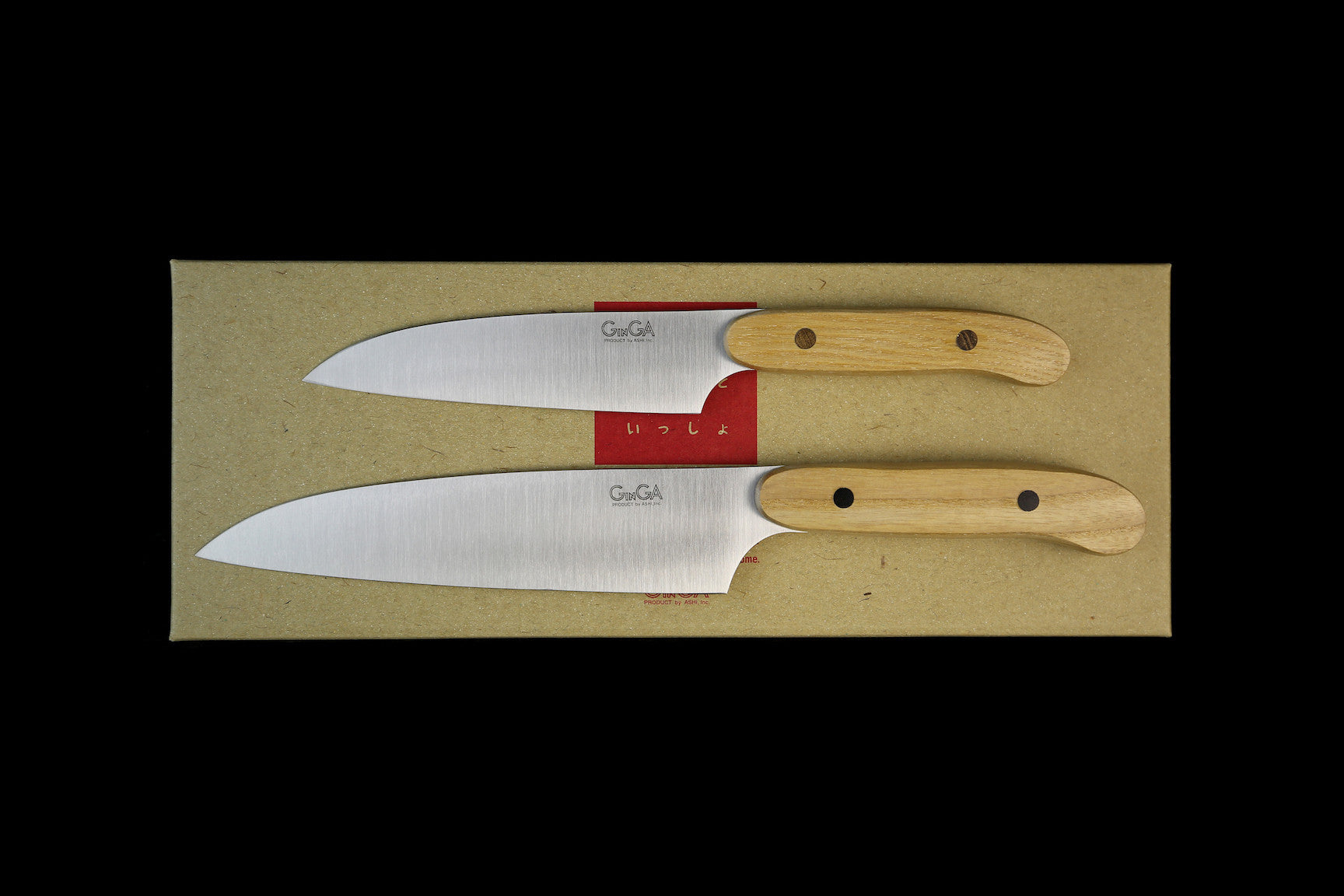 Ashi refers to this set as the “With Mother” set. They designed these knives to be very unintimidating and easy to use. Ashi hopes to encourage families to cook together in the home and hopes that this set will inspire people to do so. The 130mm and 170mm sized knives are very comfortable sizes for many home cooks. The shape of the blade is similar to the santoku knives that have become so popular recently. This set can be great for home cooks looking for easy to use and unintimidating knives, or for pros looking for a few comfortable line knives for cramped quarters. Don’t let the name of the set throw you off… these are high-performance knives for home cooks and pros alike. These knives are hardened to 58 HRC.