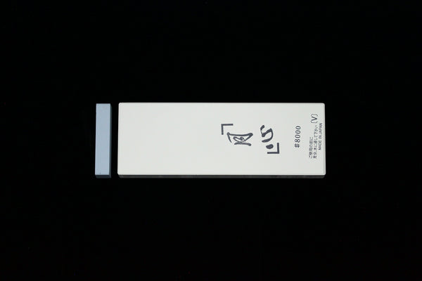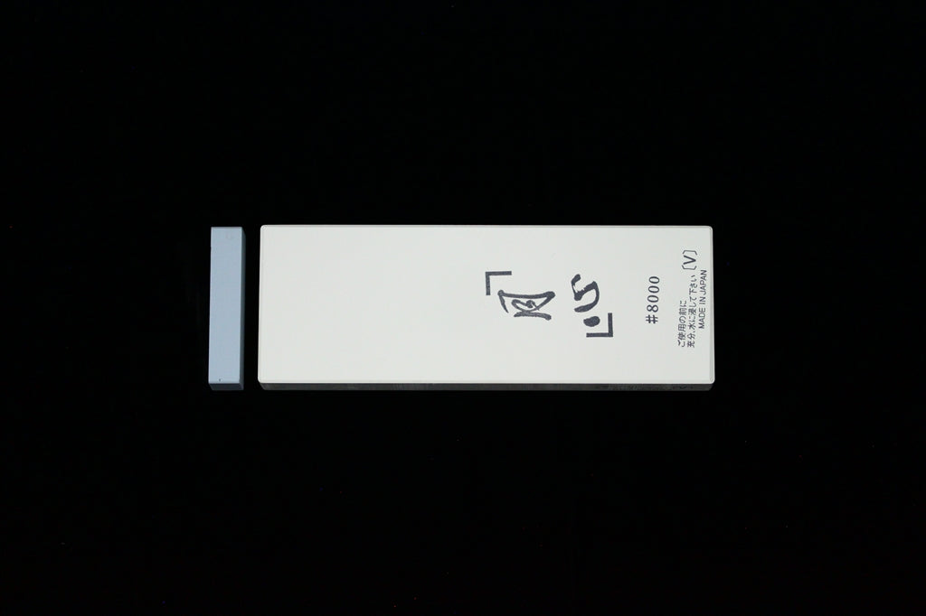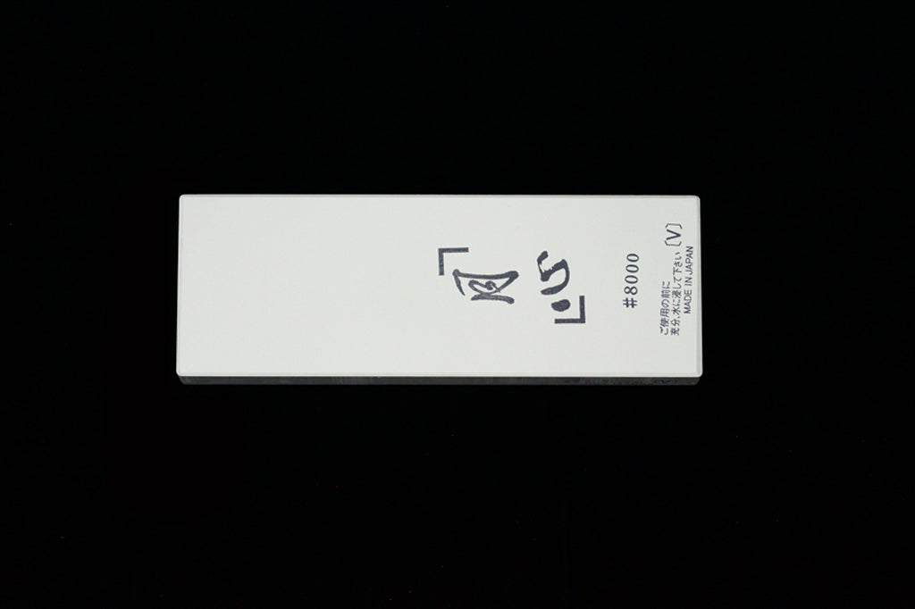 The Gesshin™ 8000 Grit Sharpening Stone is an awesome shiage toishi (finishing stone). Like this rest of the Gesshin™ stones, I have been testing this one for quite some time now. This is one of my favorite stone in the 8000+ grit range. It has amazing feedback, it extremely fast cutting, works up mud easily, is not too hard for kitchen knives, leaves a very nice finish, and resists dishing well. Like the Gesshin™ 400, 2000, and 4000, this stone works well on all kinds of steel, from simple carbon to high tech powdered stainless. This stone makes a great finishing stone for your kitchen knives. It is best to use this stone after using a stone in the 4000-6000 grit range. The edge this stone leaves is refined with just enough tooth for ktichen purposes. The finish is whiteish hazy and the stone gives decent contrast between softer cladding and core steels on wide bevel clad knives. This stone should be soaked for about 5 minutes before use. I do not store mine in water, but I have tested storing the stone in water and saw no problems. If you do leave your stone in water, please change the water regularly. When drying out this stone or any others, do so out of the sunlight in a well-ventilated area. This stone may or may not include the nagura stone depicted in the product photos.
