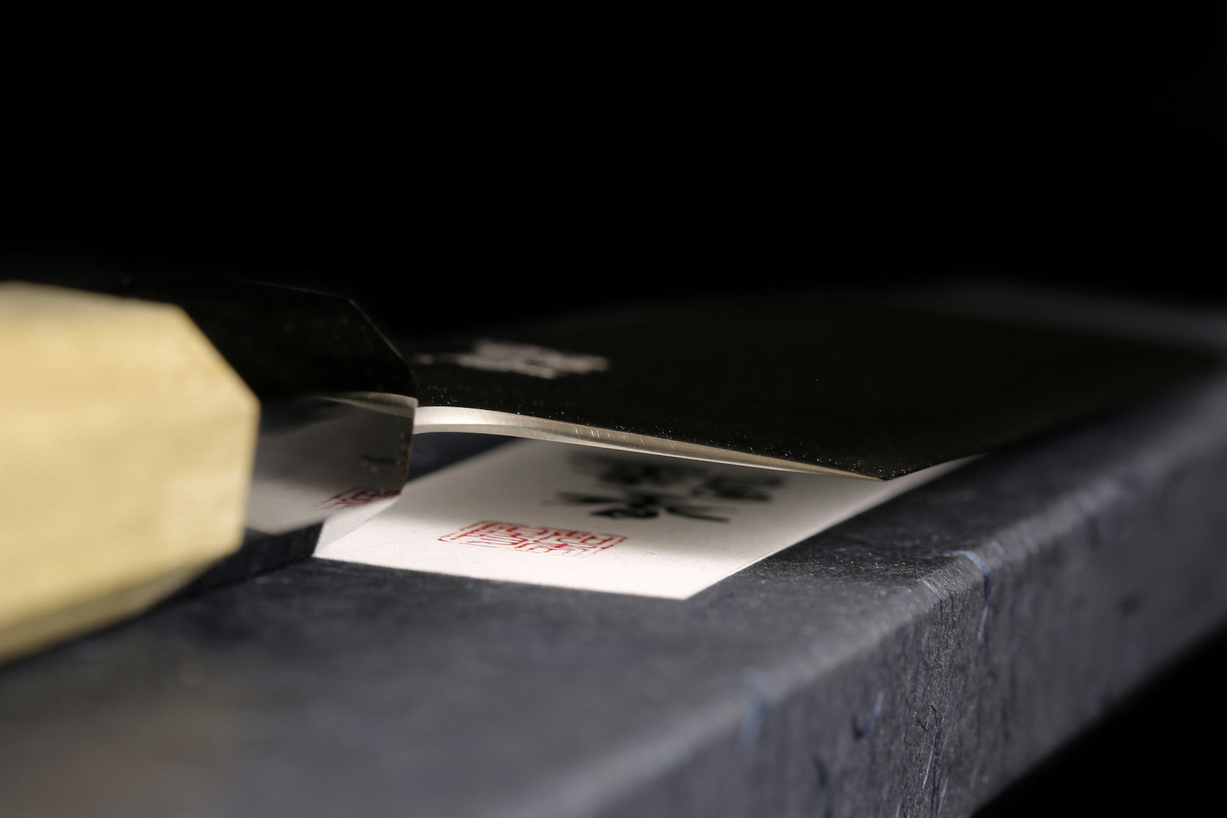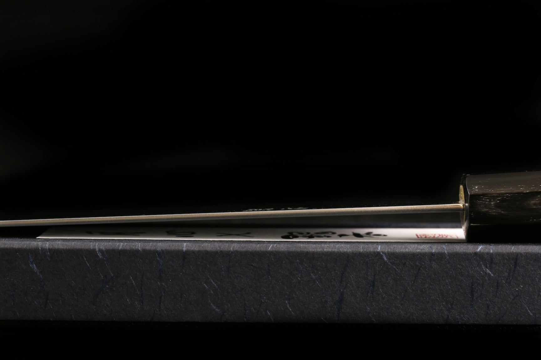 • The Gesshin Ginga line is a custom line we have produced for us exclusively. These knives are very thin and light and have great fit and finish. The spine and choil are rounded and polished. The steel is a very fine grained stainless steel hardened to about 61HRC. These knives take a great edge, sharpen easily, resist chipping well, and have great cutting performance due to their awesome geometry.