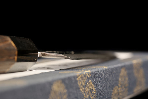 Before shipping, we perform extensive preparation to ensure optimal performance and comfort. This includes rounding and polishing the spine and choil, along with a full wide-bevel sharpening. This meticulous process removes any high or low spots, ensuring that future wide-bevel sharpening is smooth and effortless.