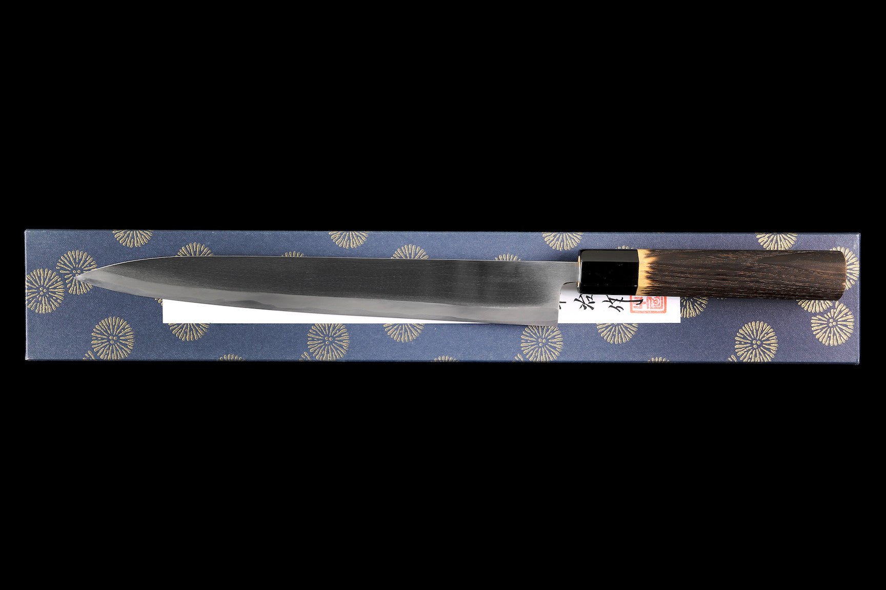 Handcrafted in a single-person workshop in Sanjo, Japan, the Gesshin Heiji 270mm Wa-Gyuto is a true testament to the artistry and precision of Japanese knife-making.