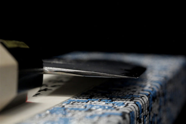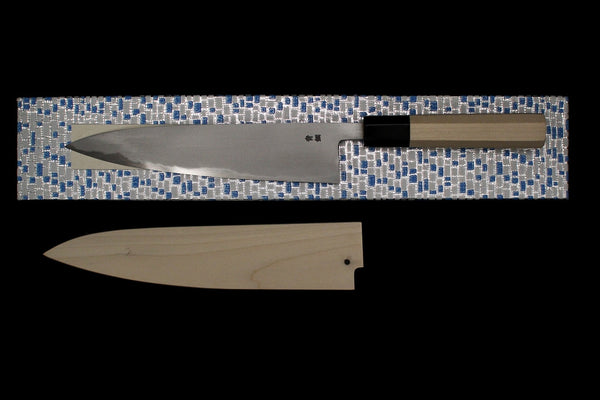 • This wa-gyuto project began when we went with the maker of our Gesshin Hide knives to visit one of the blacksmiths he often works with.  For a long time now, I have been saying that the maker of our Gesshin Hide line and his father are by far the best knife sharpeners I have met.  A while back, we started the Blue #2 Hon-Kasumi Wa-Gyuto series, and this is an evolution of that line.