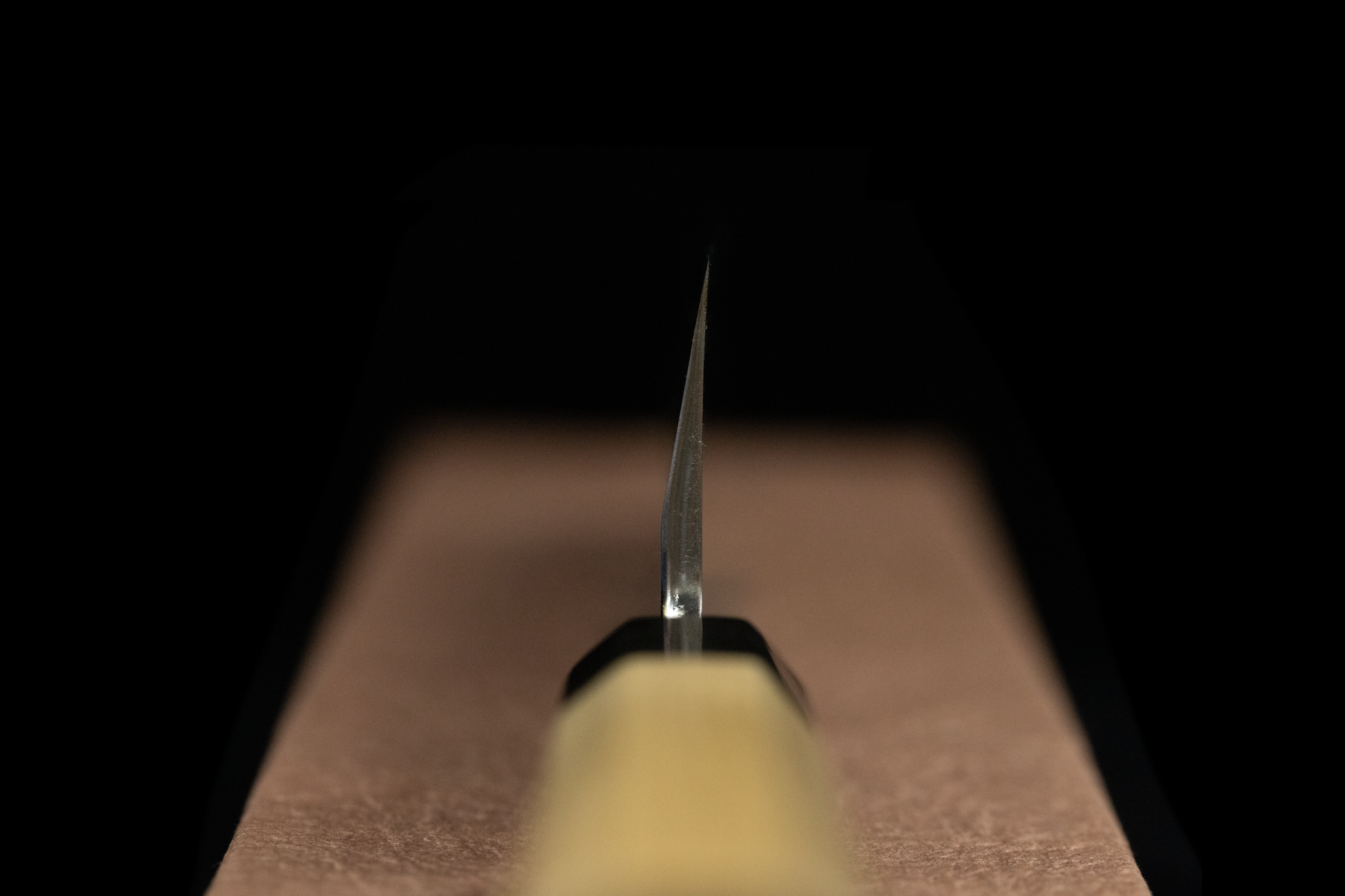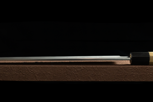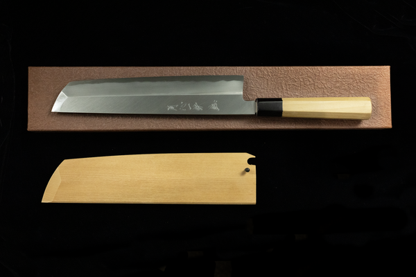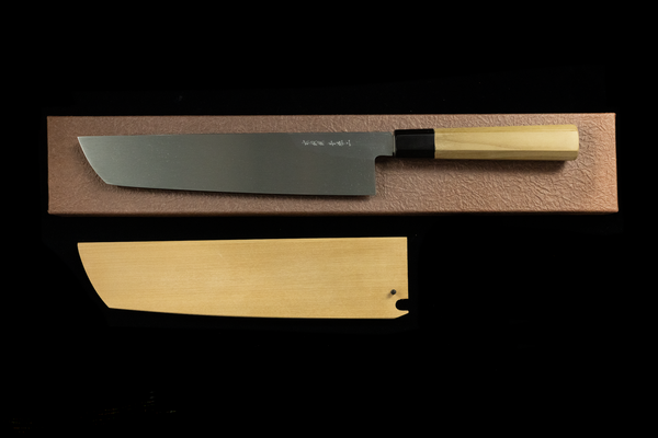 • This Gesshin Ittetsu 270mm Blue #2 Hon-Kasumi Hamokiri is a special order from the talented craftsmen responsible for our Ittetsu series. Expertly forged and precisely ground, the overall fit and finish and performance of this knife are second to none. The size and weighty nature of this blade give it a really nice presence and in-hand feel. The hamokiri knife is used for making very fine cuts along the fillet of a hamo, aka conger eel, in order to break the small bones that run throughout it.