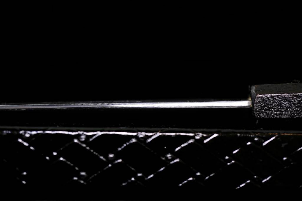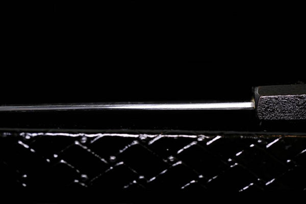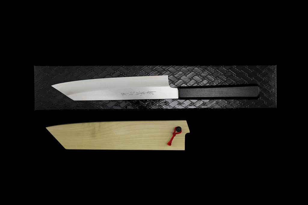 • These knives represent some of the highest level of craftsmanship and quality we have seen. The blacksmiths, sharpeners, and even lacquer-ware craftsmen are all amazingly skilled, as can clearly be seen by simply looking at them. In fact, all of the craftsmen are certified craftsmen or dentou-kougeishi (a very prestigious honor). These knives have amazing fit and finish, spectacular grinds, and amazing geometry. They are really thin behind the edge, have great distal taper, and wide bevels, making them easier to thin and sharpen. Unlike our higher end Gesshin Kagekiyo lines, these lacquer handles are far more simple, and the sayas that come with these are normal sayas instead of lacquered sayas.  The steels are also a bit more forgiving and easier to work with.