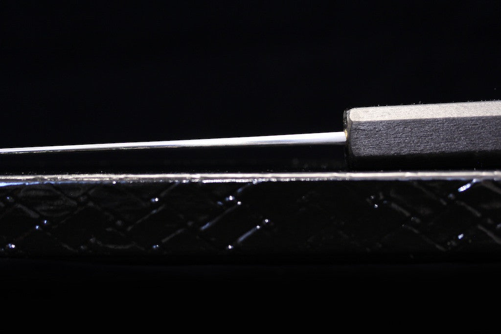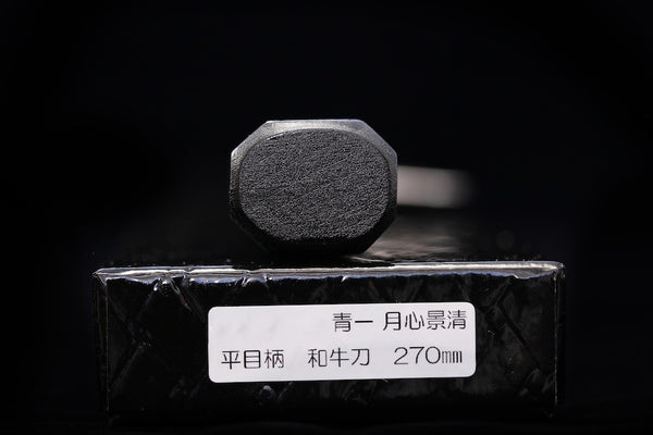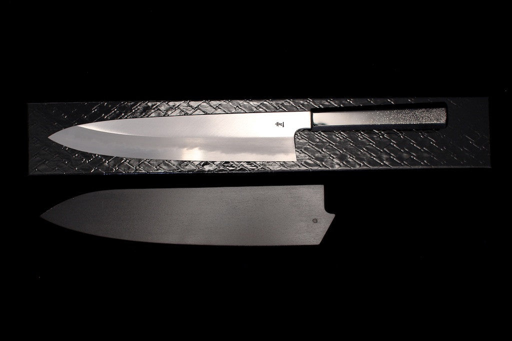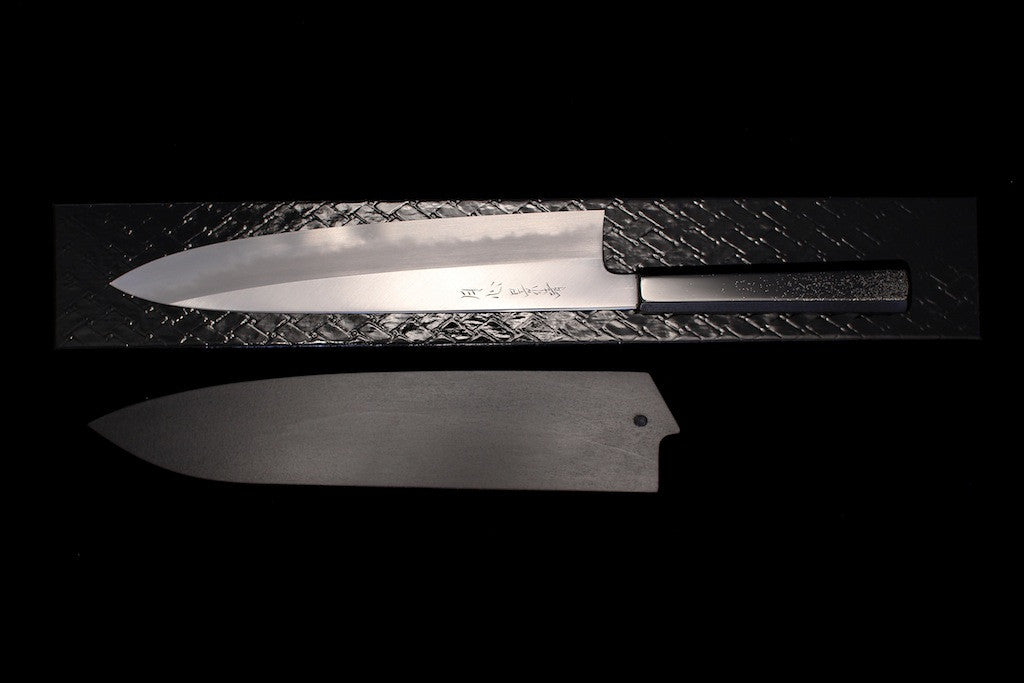 We are proud to introduce our new Gesshin Kagekiyo series. This is something we have been working on for a few months now, together with one of our partners in Japan. Sara and I are very excited to finally be able to introduce it. These knives represent some of the highest level of craftsmanship and quality we have seen. The blacksmiths, sharpeners, and even lacquer-ware craftsmen are all amazingly skilled, as can clearly be seen by simply looking at them. In fact, all of the craftsmen are certified craftsmen or dentou-kougeishi (a very prestigious honor). These knives have amazing fit and finish, spectacular grinds, some of the most beautiful handles and saya we've seen on Japanese knives, and amazing geometry. They are really thin behind the edge, have great distal taper, and wide bevels, making them easier to thin and sharpen. The lacquer craftsmen uses real lacquer on these, not synthetic lacquer as more commonly used. Even the boxes are beautiful lacquer-ware. We hope you guys are as excited as we are.