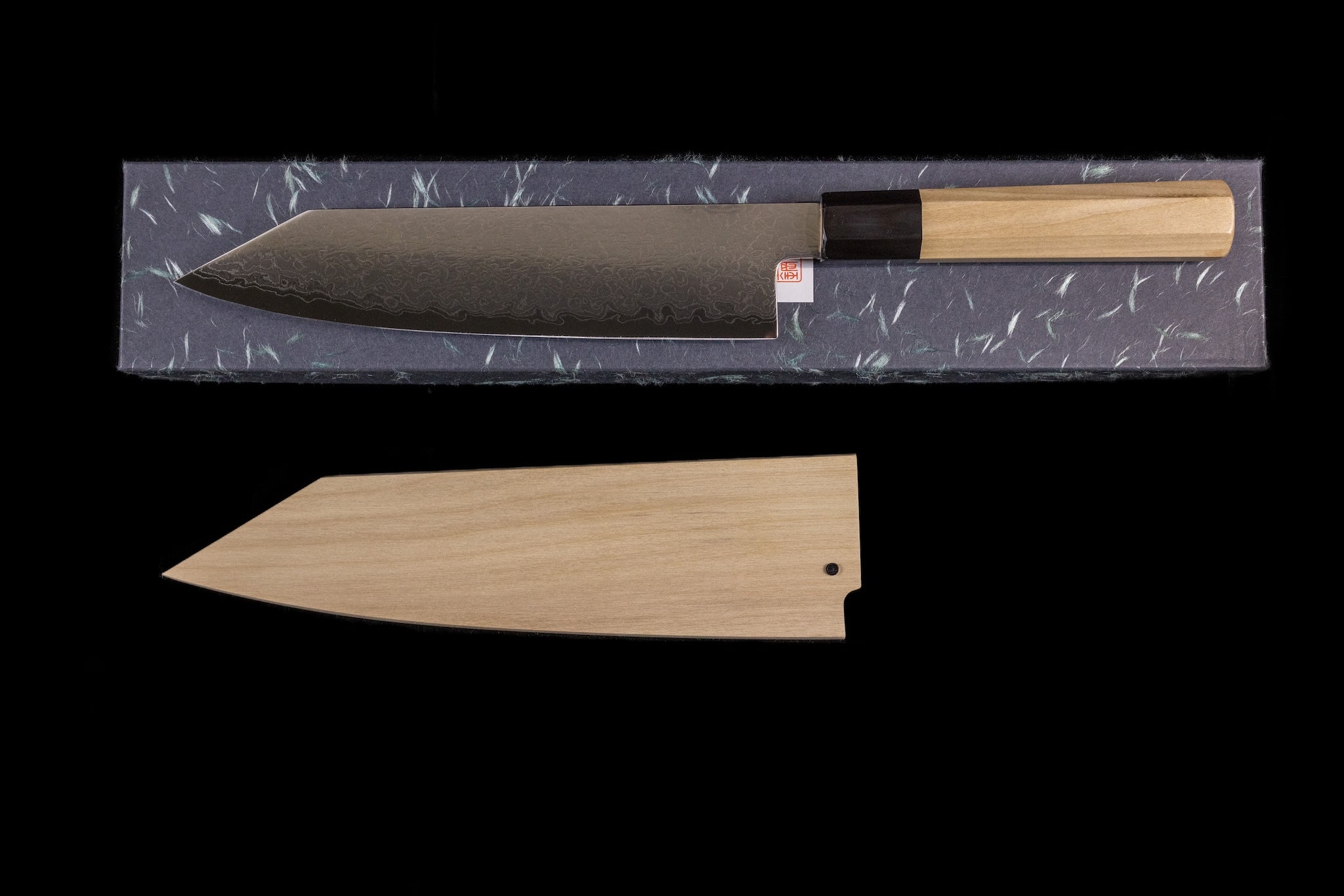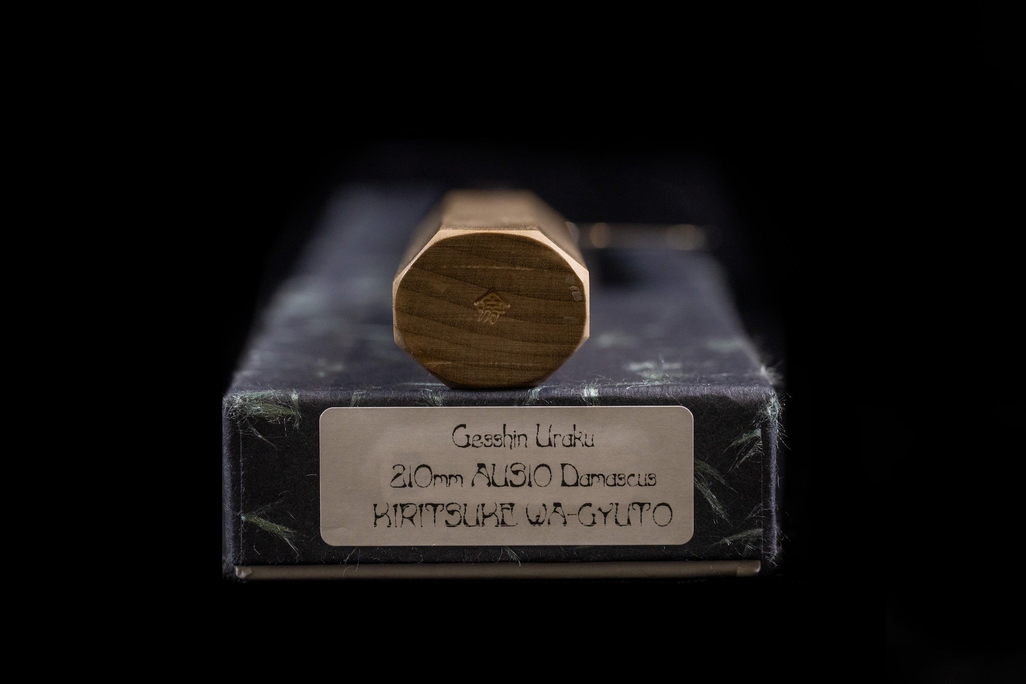 Gesshin Uraku 210mm AUS10 Damascus Kiritsuke Wa-Gyuto