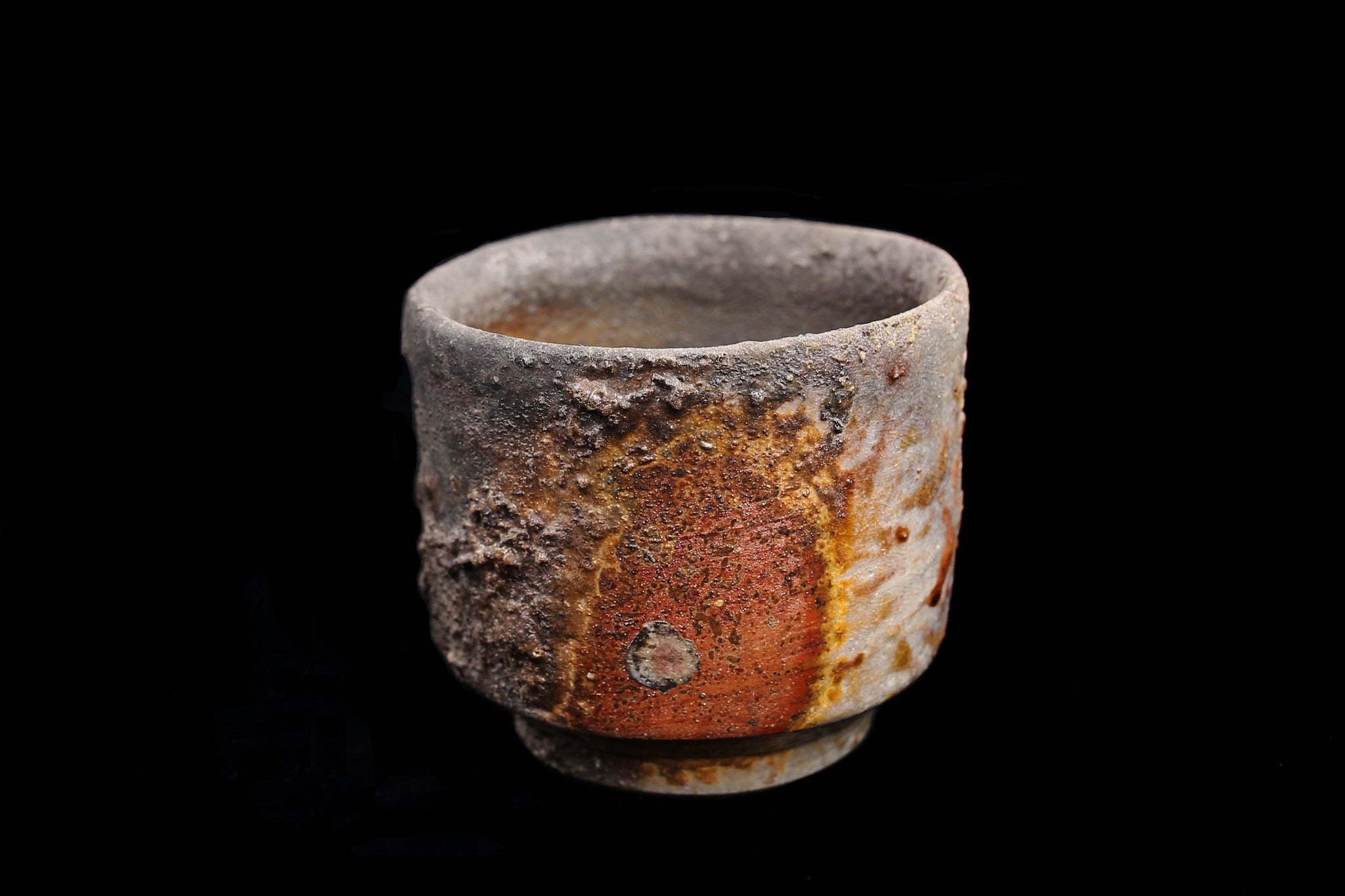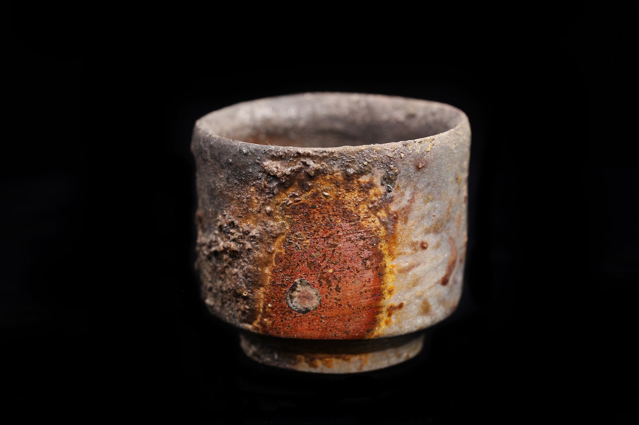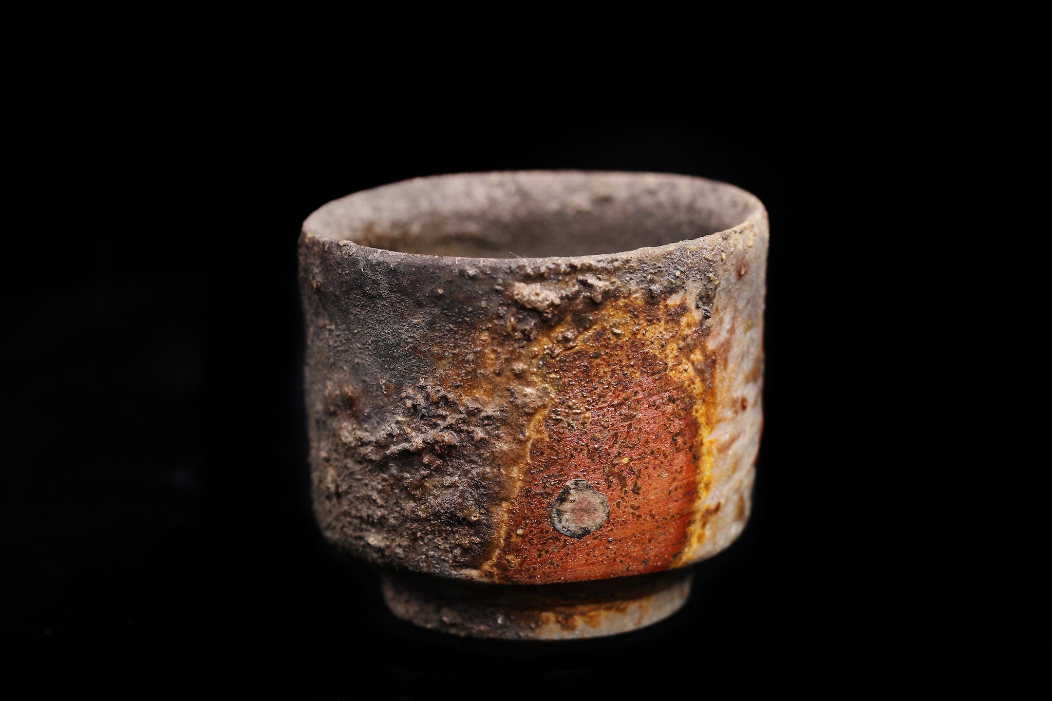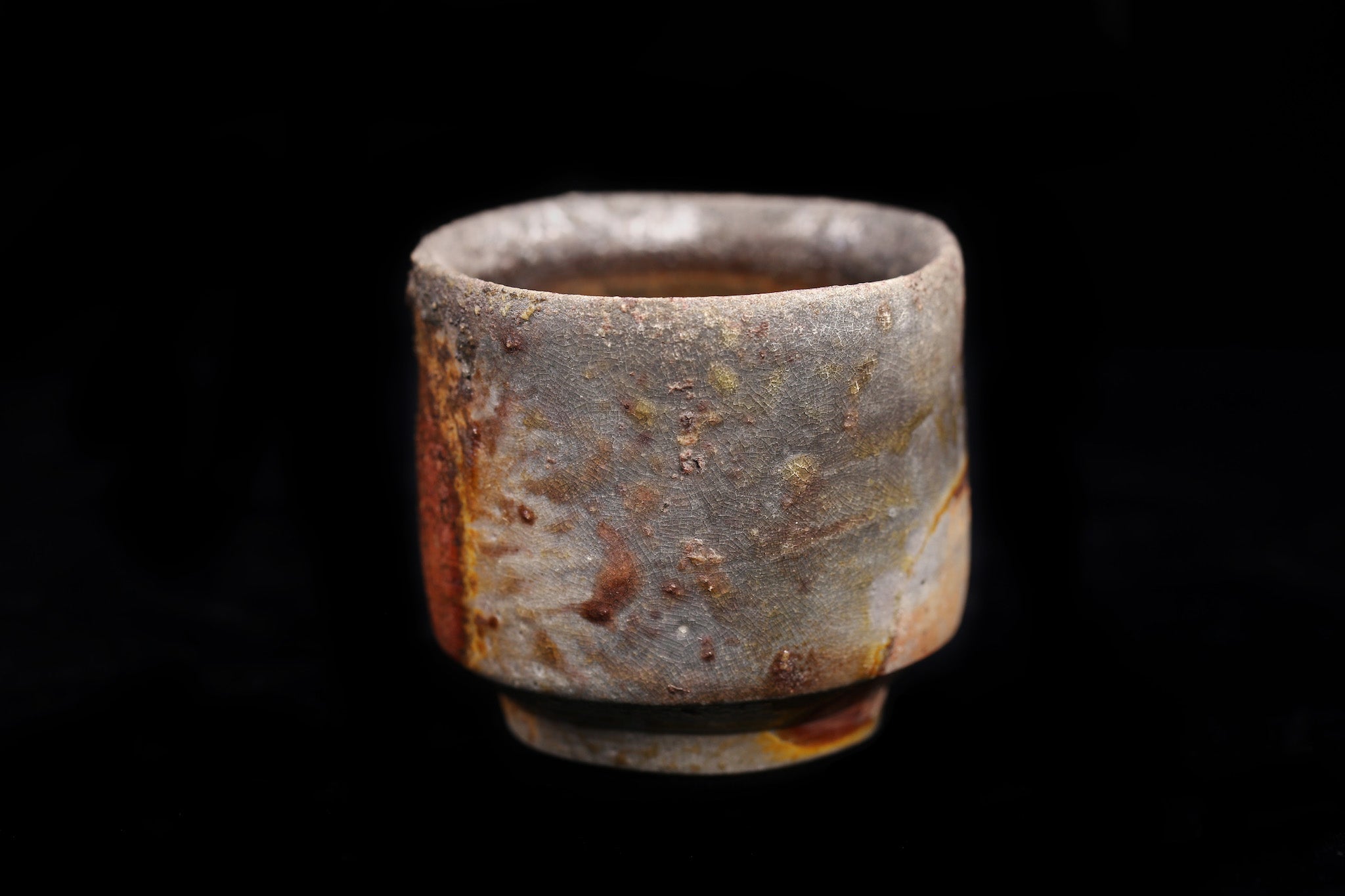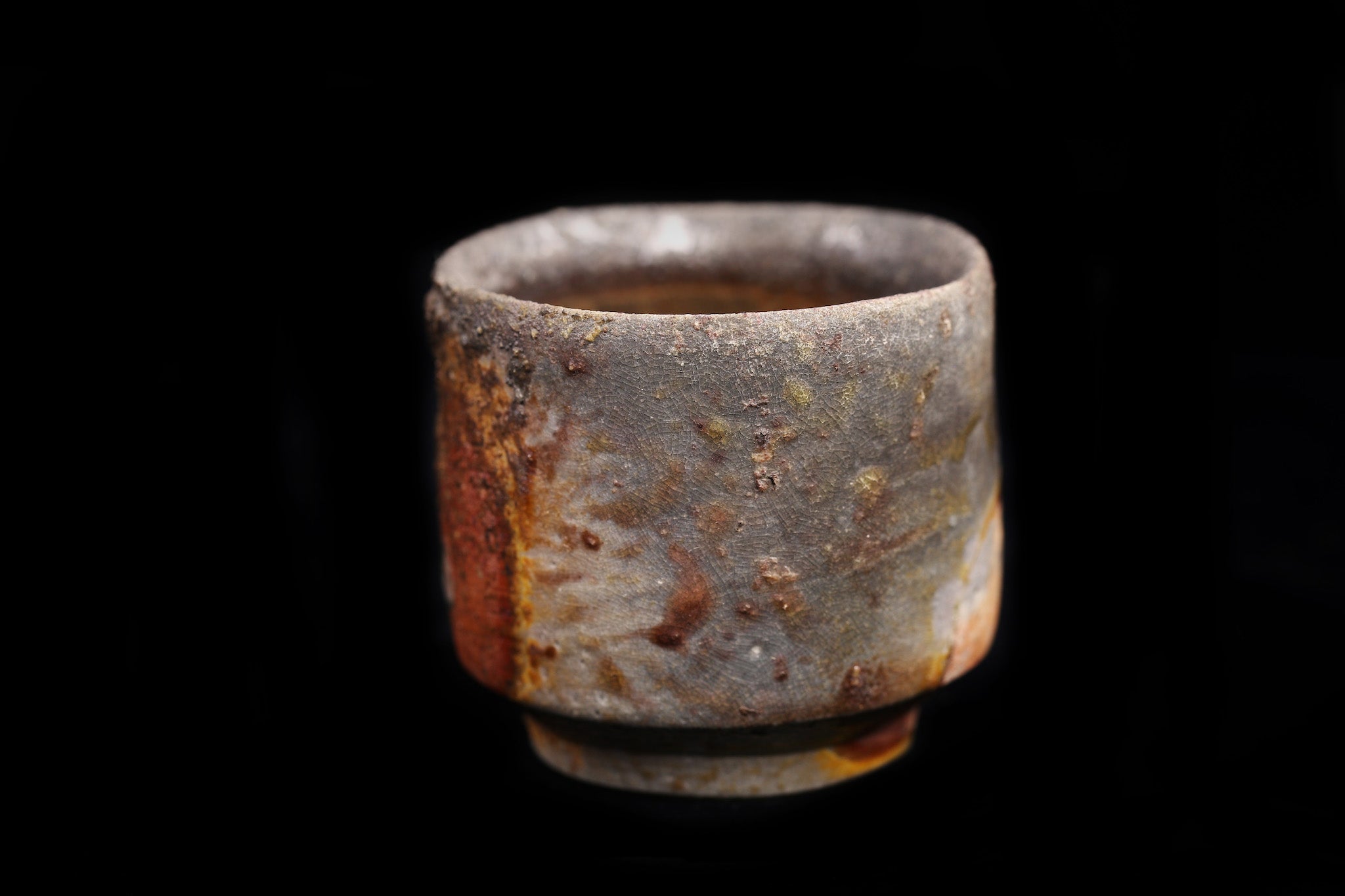 Guinomi refers to small sake cups. These Tokeido guinomi are not only beautiful (often referred to the "scenery" of an object in the world of Japanese pottery), but also amazingly comfortable, with a nice in-hand feel. They feature "takadai"- raised at the bottom to stabilize- and have a beautiful "mikomi" ( a little indentation in the bottom of the bowl section) where sake is poured into. We handpicked pieces that exhibit a beautiful natural ash glaze. The gradual color differences are a function of the placement of each pieces within the kiln- determined by their distance to from and exposure to the fire. You can also see the shadows from other pieces surrounding it. As such, each piece is unique and features one-of-a-kind patterns and colors.