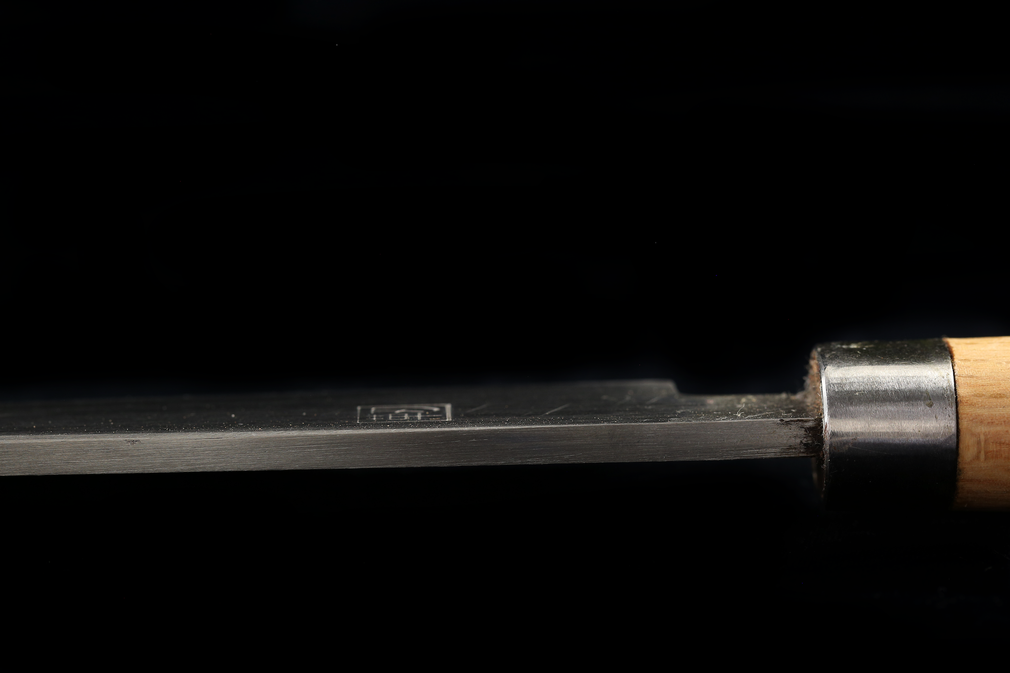 • This high speed knife is one of a kind knife.  The maker of the Jin knives was born in Tokyo before World War II and began making knives early on in his life.  We met with him some years ago, during our first business trip to Japan.  After a very nice meeting with him, we were lucky enough to be allowed to carry his knives.  At the time we met him, he was already retired, so his knives are all new old stock (unused and new, but produced years ago).  Sadly, this craftsman passed away at the end of 2015.  He was a dear friend and is sincerely missed.  He is survived by his son, who, while also a craftsman, does not make knives.  As he is no longer producing knives, the inventory is EXTREMELY LIMITED.  Once things are gone, they are gone.
