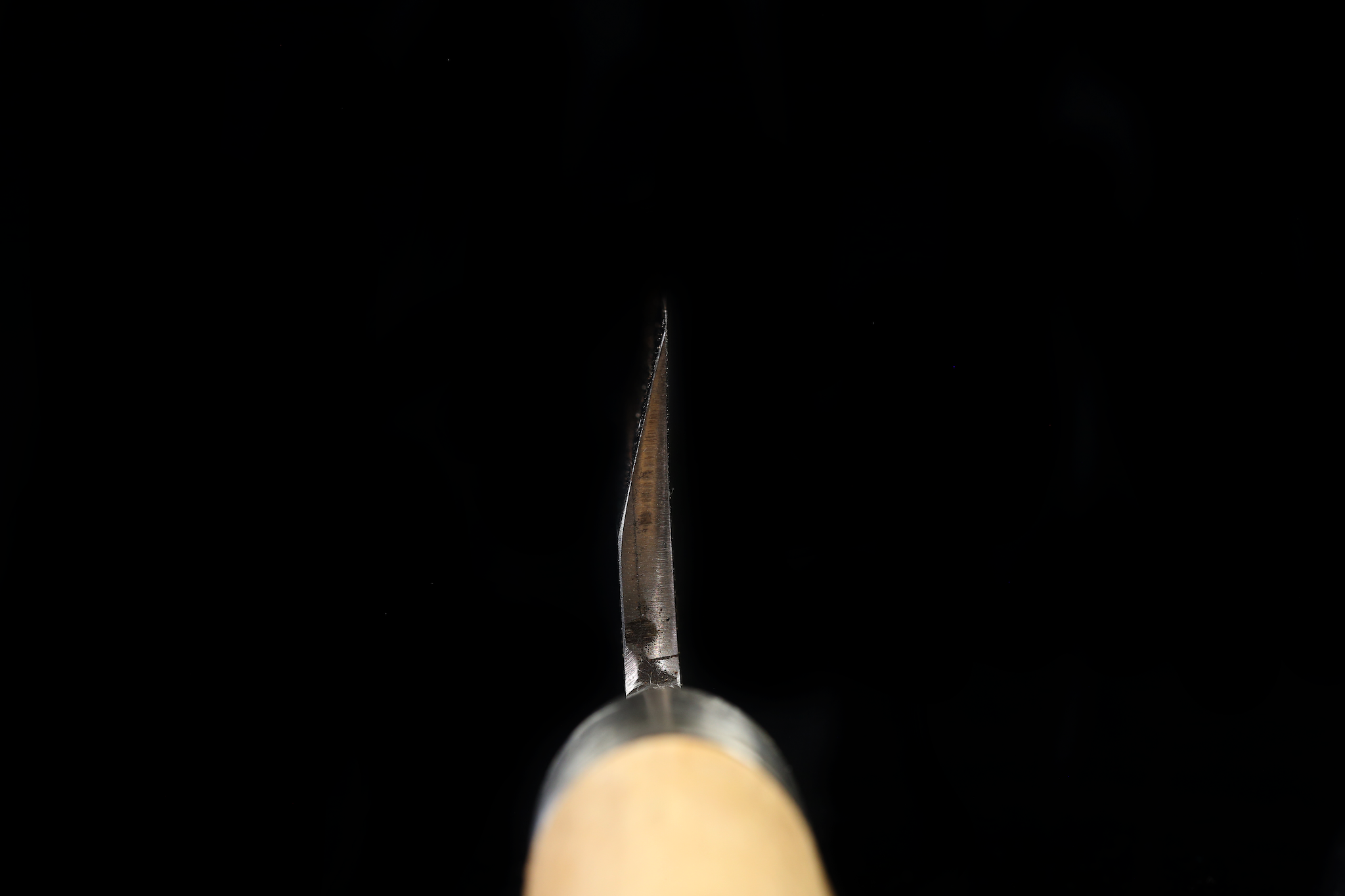 You will notice that in between the softer carbon steel and harder High Speed Steel cutting edge, there is a tiny bit of copper.  This was a method of cladding that was used long ago in Japan.