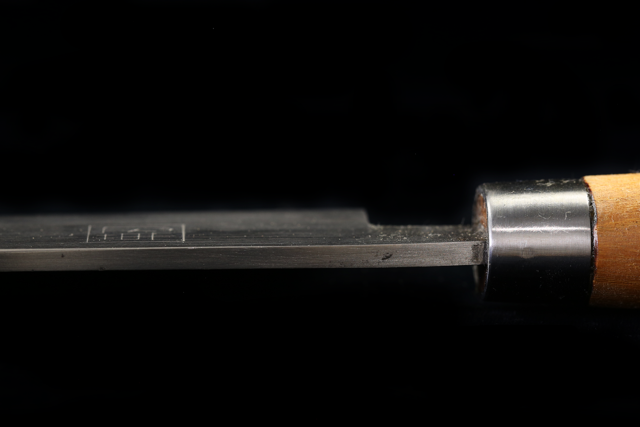 You will notice that in between the softer carbon steel and harder High Speed Steel cutting edge, there is a tiny bit of copper.  This was a method of cladding that was used long ago in Japan.