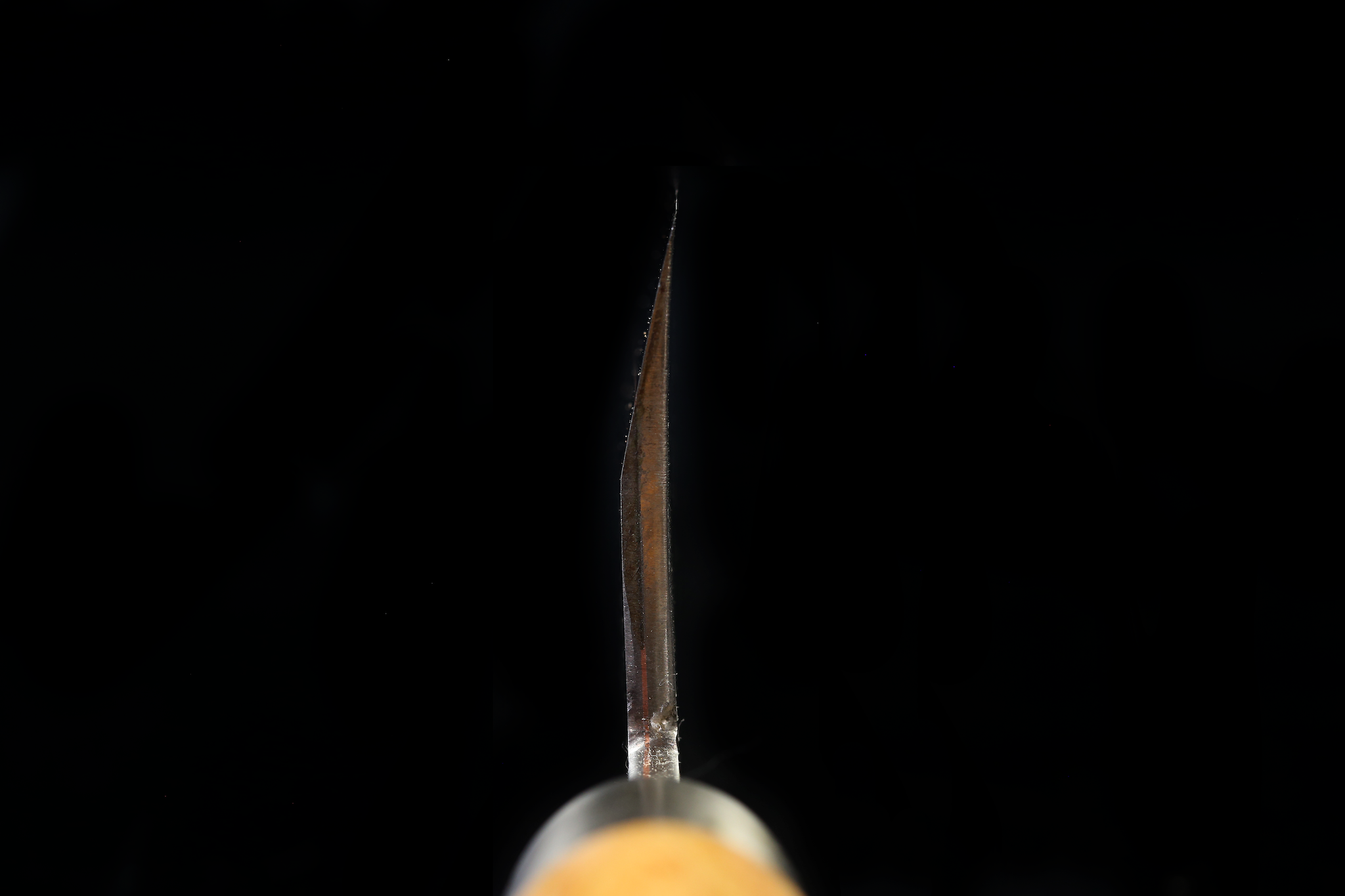 • This high speed knife is one of a kind knife.  The maker of the Jin knives was born in Tokyo before World War II and began making knives early on in his life.  We met with him some years ago, during our first business trip to Japan.  After a very nice meeting with him, we were lucky enough to be allowed to carry his knives.  At the time we met him, he was already retired, so his knives are all new old stock (unused and new, but produced years ago).  Sadly, this craftsman passed away at the end of 2015.  He was a dear friend and is sincerely missed.  He is survived by his son, who, while also a craftsman, does not make knives.  As he is no longer producing knives, the inventory is EXTREMELY LIMITED.  Once things are gone, they are gone.
