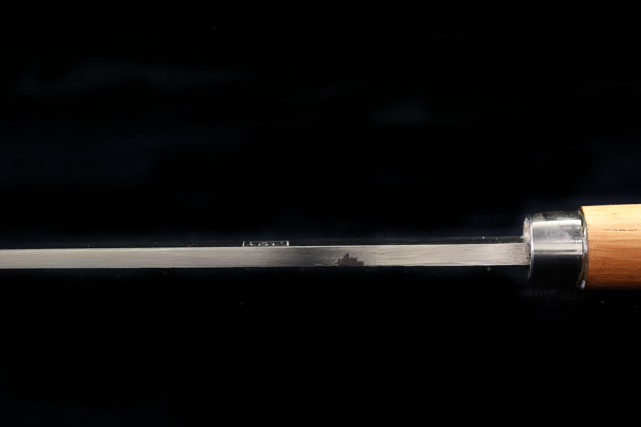 • This high speed knife is one of a kind knife.  The maker of the Jin knives was born in Tokyo before World War II and began making knives early on in his life.  We met with him some years ago, during our first business trip to Japan.  After a very nice meeting with him, we were lucky enough to be allowed to carry his knives.  At the time we met him, he was already retired, so his knives are all new old stock (unused and new, but produced years ago).  Sadly, this craftsman passed away at the end of 2015.  He was a dear friend and is sincerely missed.  He is survived by his son, who, while also a craftsman, does not make knives.  As he is no longer producing knives, the inventory is EXTREMELY LIMITED.  Once things are gone, they are gone.