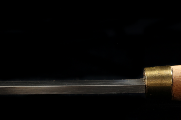 You will notice that in between the softer carbon steel and harder High Speed Steel cutting edge, there is a tiny bit of copper.  This was a method of cladding that was used long ago in Japan.