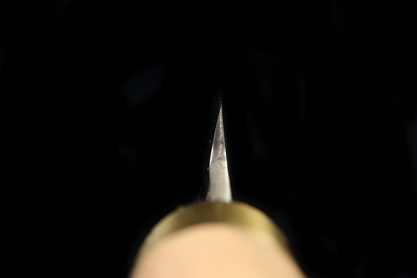 • This high speed knife is one of a kind knife.  The maker of the Jin knives was born in Tokyo before World War II and began making knives early on in his life.  We met with him some years ago, during our first business trip to Japan.  After a very nice meeting with him, we were lucky enough to be allowed to carry his knives.  At the time we met him, he was already retired, so his knives are all new old stock (unused and new, but produced years ago).  Sadly, this craftsman passed away at the end of 2015.  He was a dear friend and is sincerely missed.  He is survived by his son, who, while also a craftsman, does not make knives.  As he is no longer producing knives, the inventory is EXTREMELY LIMITED.  Once things are gone, they are gone.