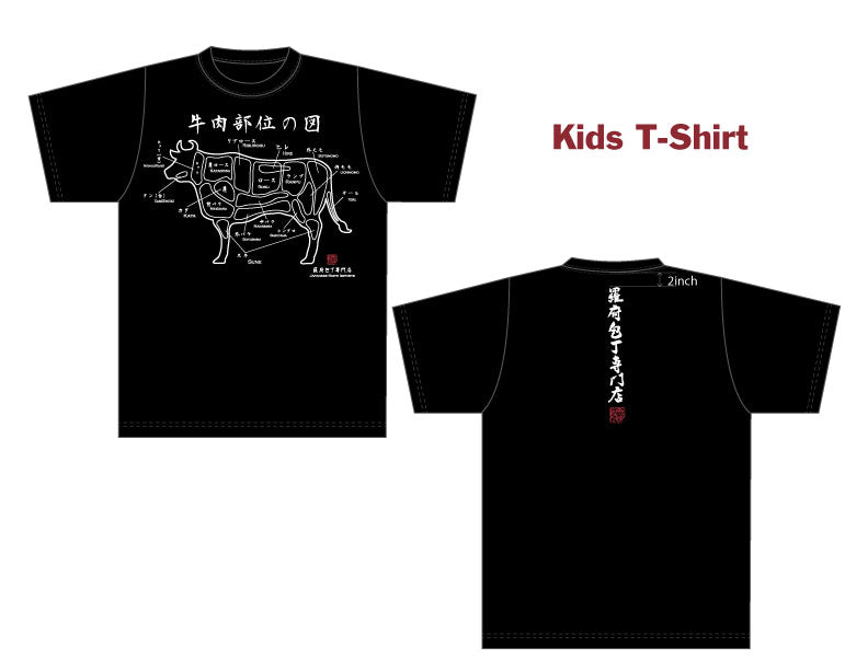 • These JKI T-Shirts were designed by Sumiko Pogue and feature calligraphy by Hiroko Yamai. They made from are extremely soft cotton/poly blend. The front design shows the various Japanese-style cuts of the animals, with part names written in both Japanese and English. The back of the T-Shirts say "Los Angeles Specialty Kitchen Knife Store" in Japanese. If you are interested in a size that we dont carry, or would like this design on a different type of product (hoodie, long sleeve shirt, etc.), please let us know and we will do our best to get you squared away.