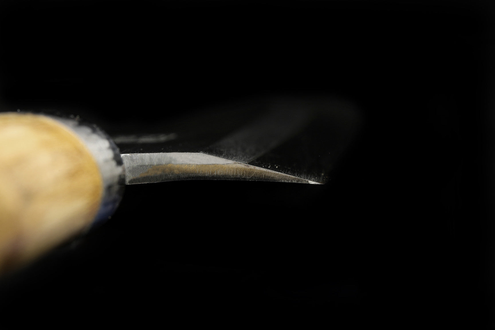 You will notice that in between the softer carbon steel and harder High Speed Steel cutting edge, there is a tiny bit of copper.  This was a method of cladding that was used long ago in Japan.