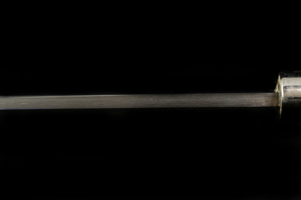 We refinish, polish, and sharpen each one of these before shipping them out.  This includes refinishing the handle and saya, cleaning up and polishing the blade, and sharpening the knife.  Because they were made a long time ago, we want to make sure that they are in the best condition they can be in by the time they make it to you.