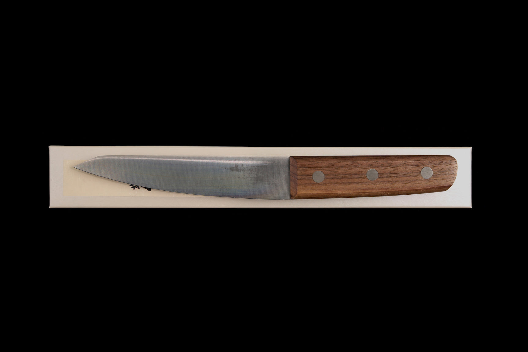 • Rinkaku is a series of butchery knives in a semi-stainless steel, featuring excellent fit and finish. The spine and choil are eased and polished, making them comfortable in use. They are rather tough and durable, sharpen very easily, and take an excellent edge. Touching them up is rather easy too. While they are not completely stainless, they are not as high maintenance as normal carbon steel knives. However, they will patina over time, and it is important to keep them clean and dry when not in use. If storing them for a longer period of time, a light coating of mineral oil or tsubaki oil is probably a good idea.