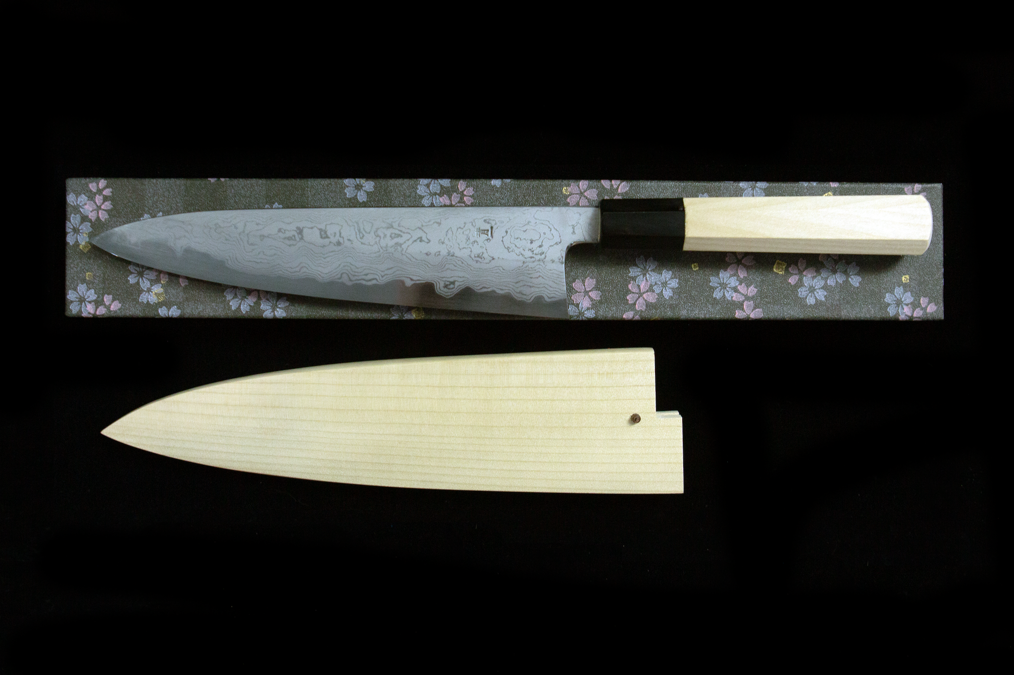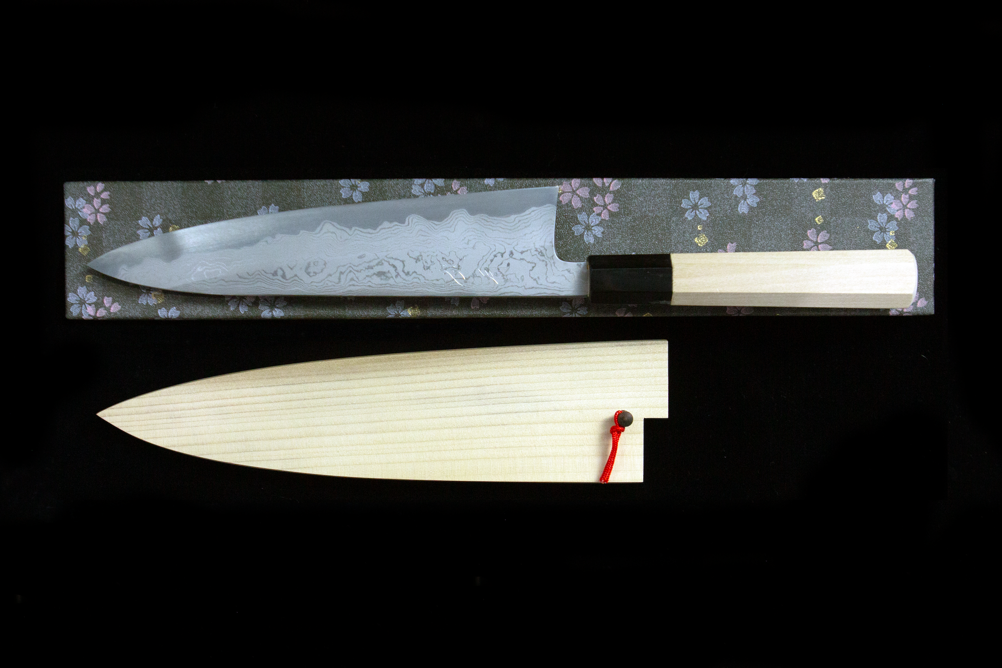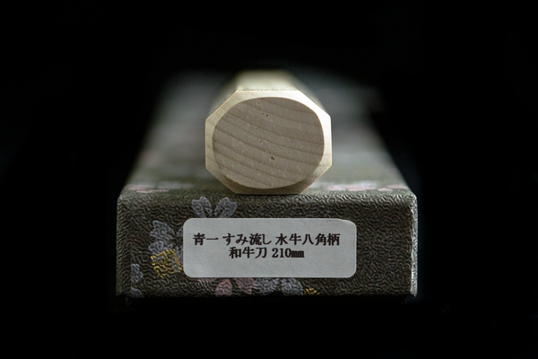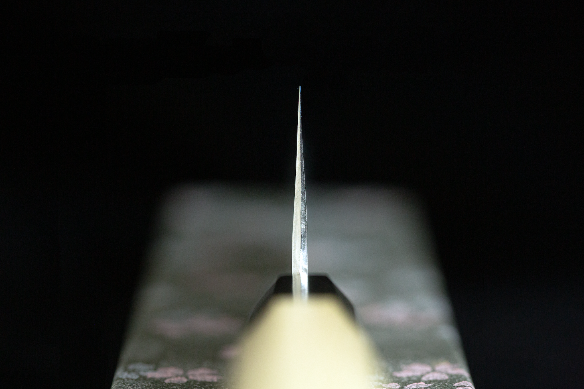 The Tangetsu series is made in Sakai. The sharpener has selected blacksmiths with whom he feels comfortable working with. He is a 3rd generation sharpener, and focuses on double bevel knives. We met some years ago, through an introduction by a good mutual friend. Our friend thought I might be interested in the knives this craftsman was making, and that he happened to be on the younger side of craftsmen in the area was an added bonus. This is the result of a couple of years of conversations, but I think you will be as happy with this series as we are.
