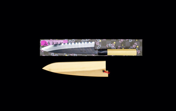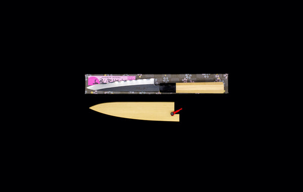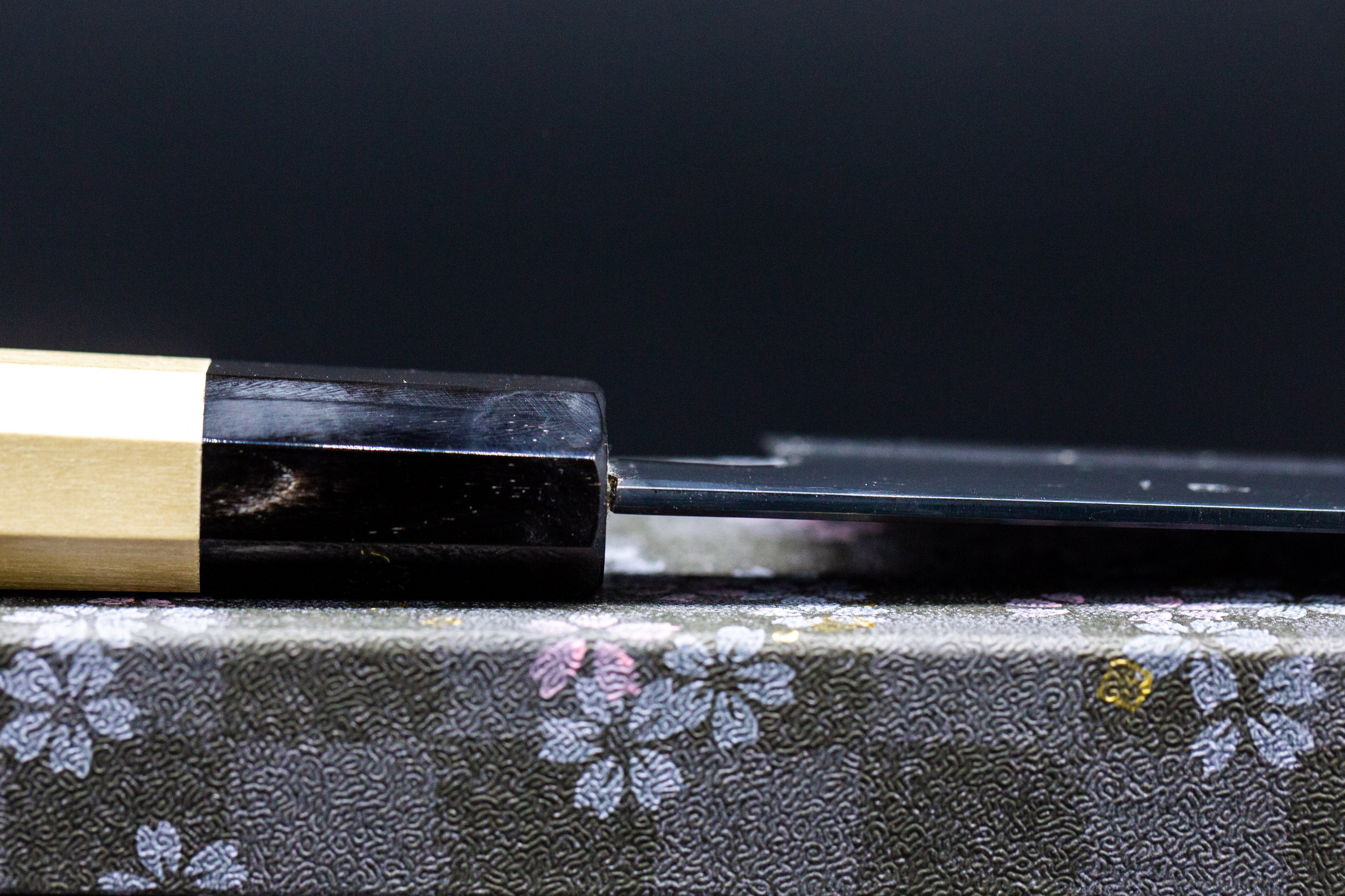 The Tangetsu series is made in Sakai. The sharpener has selected blacksmiths with whom he feels comfortable working with. He is a 3rd generation sharpener, and focuses on double bevel knives. We met some years ago, through an introduction by a good mutual friend. Our friend thought I might be interested in the knives this craftsman was making, and that he happened to be on the younger side of craftsmen in the area was an added bonus. This is the result of a couple of years of conversations, but I think you will be as happy with this series as we are.