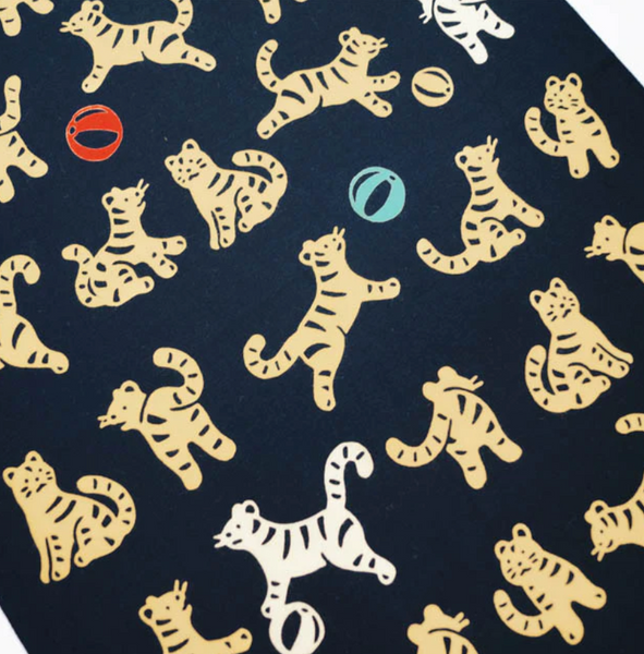• Tenugui have their roots deep in Japanese history. Originally used as part of decorative fashion, tenugui later became part of daily life, being used around households and as general purpose cloths. Over time, the style, color, and even dying process has developed into what it is today. These pieces of cloth are hand dyed, using natural dyes. They should be washed in cold water with no detergent separately from other items. Over time, the color of these will fade a bit. This is something that Japanese people love about tenugui. These fun and artistic "pieces of dyed cotton cloth" can be used for anything from wiping off your hands or knife, to wrapping up your knives for storage. They even make good bandannas. *Wash in cold water separate from other items. Hang to air dry. Color will fade a bit over time. The edges are unfinished and will tend to unravel for about 3-5mm. Don't pull loose threads (use scissors to cut them if they are a nuisance).