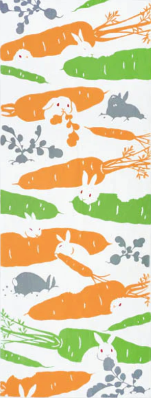 • Tenugui have their roots deep in Japanese history. Originally used as part of decorative fashion, tenugui later became part of daily life, being used around households and as general purpose cloths. Over time, the style, color, and even dying process has developed into what it is today. These pieces of cloth are hand dyed, using natural dyes. They should be washed in cold water with no detergent separately from other items. Over time, the color of these will fade a bit. This is something that Japanese people love about tenugui. These fun and artistic "pieces of dyed cotton cloth" can be used for anything from wiping off your hands or knife, to wrapping up your knives for storage. They even make good bandannas. *Wash in cold water separate from other items. Hang to air dry. Color will fade a bit over time. The edges are unfinished and will tend to unravel for about 3-5mm. Don't pull loose threads (use scissors to cut them if they are a nuisance).