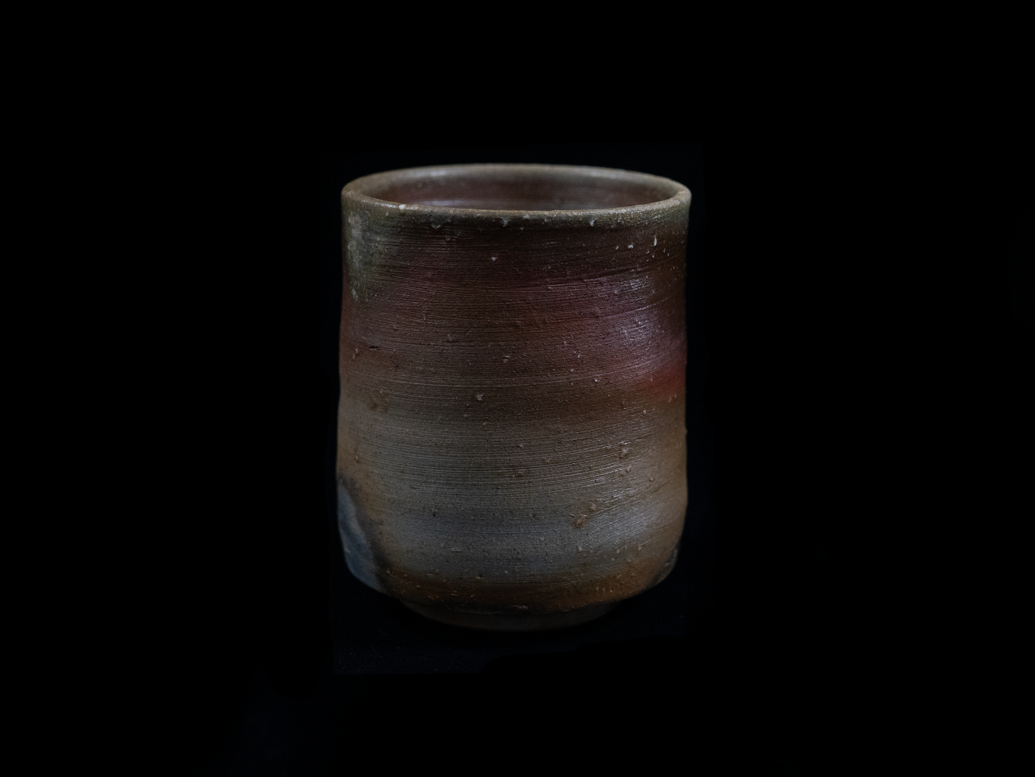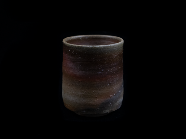 Yunomi are small cups for a wide range of liquids, cold and hot. These cups show the traditional Bizen beauty: unglazed when placed in a kiln but acquiring a natural ash glaze through the firing, with a pattern from the flames and shadows on the surface. When used for drinking hot tea, the thickness of the clay helps insulate the heat and makes it comfortable to hold in hand.