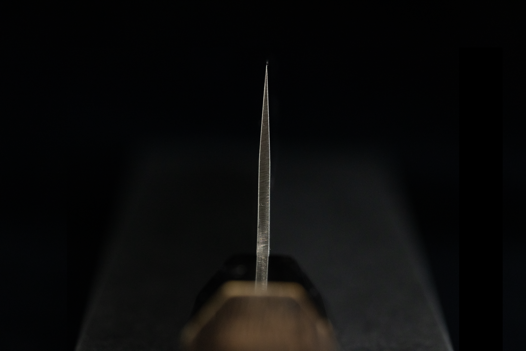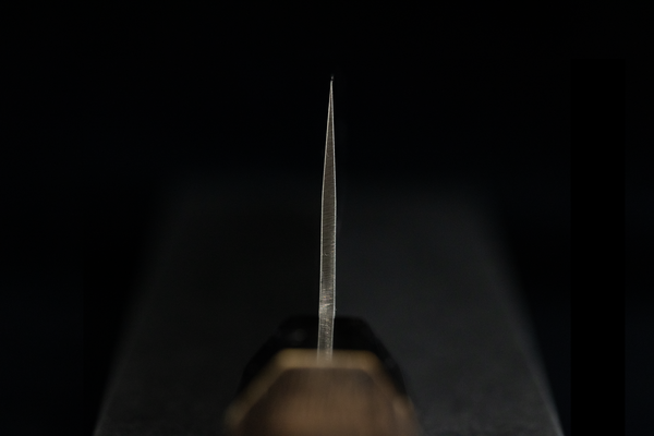 • The Toki, or Crested Ibis, is an endangered species, once common in the Niigata area. Featuring white plumage on its body and a red head, the bird has been a part of Japanese folklore for generations. As this series is made in Sanjo, Niigata, the name Toki has significance. These knives are made by hand in a medium-sized workshop, focused on making user-friendly knives. Their knives tend to be a medium thickness, not super thin, but not like a super thick workhorse. The wide bevel designs work well for food release. And, because we love burnt chestnut handles, and they also come from Sanjo, the series features octagonal burnt chestnut handles with water buffalo ferrules.